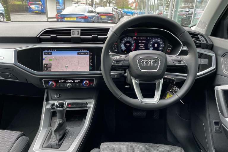 AMAZON ALEXA INTEGRATION, AUDI DRIVE SELECT, AUDI VIRTUAL COCKPIT - 10.25'' DISPLAY, AUDI LANE DEPARTURE WARNING, CAMERA BASED TRAFFIC SIGN RECOGNITION, SMARTPHONE INTERFACE INCLUDES WIRELESS APPLE CARPLAY/ANDROID AUTO, VOICE CONTROL SYSTEM WITH NATURAL LANGUAGE INTERACTION, DAB DIGITAL RADIO MODULE, ELECTRICALLY FOLDING, ADJUSTABLE AND HEATED DOOR MIRRORS WITH INTEGRATED LED SIDE INDICATORS AND KERB VIEW FUNCTION FOR PASSENGER SIDE, DUAL ZONE ELECTRONIC CLIMATE CONTROL, HILL HOLD ASSIST, SONOS 3D PREMIUM SOUND SYSTEM, HEATED FRONT SEATS, AUDI PHONE BOX. THIS CAR COMES WITH THE BALANCE OF THE MANUFACTURERS WARRANTY UNTIL 01-03-2028 AUDI SOUTHAMPTON ARE DELIGHTED TO OFFER THIS AUDI Q3 35 TFSI SPORT 5DR S TRONIC [TECH PACK] IN BLUE AND HAS COMPLETED JUST 2,000 MILES. WE ARE PROUD TO BE PART OF THE HARWOODS GROUP, A FAMILY RUN BUSINESS ESTABLISHED IN 1931. WITH FOUR APPROVED AUDI RETAILERS WITHIN OUR GROUP, WE HAVE ACCESS TO OVER 400 VEHICLES. IF THIS ISN'T THE RIGHT CAR FOR YOU OUR GROUP STOCK HAS SPECIFICATION TO INCLUDE SUNROOF, LEATHER, HEATED SEATS, APPLE CAR PLAY, HEATED STEERING WHEEL, REVERSE CAMERA, REAR ENTERTAINMENT, TOWBAR, 360-DEGREE CAMERA, COMFORT & SOUND PACK, TECH PACK, PANORAMIC SUN ROOF, TOW BAR, BLACK PACK, AIR SUSPENSION, APPLE CARPLAY, ADAPTIVE CRUISE, MASSAGE SEATS, REFRIGERATOR, AWD, TECHNOLOGY PACK, HEAD UP DISPLAY, VORSPRUNG, TECHNIK, BLACK EDITION, S-LINE, S LINE, EDITION 1, TFSI, QUATTRO, SPORTBACK, LWB. OTHER COLOUR OPTIONS INCLUDING BLACK, BLUE, GREEN, SILVER, WHITE, RED, GREY, YELLOW, ORANGE. INTERIOR OPTIONS OF EBONY, BLACK, IVORY, WHITE, TAN, CREAM, OYSTER, & EURO 6 ULEZ COMPLIANT DRIVE TRAINS.