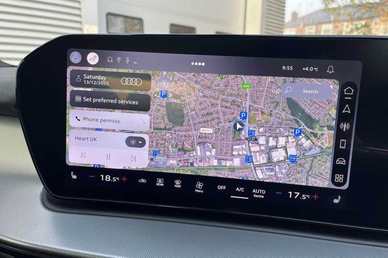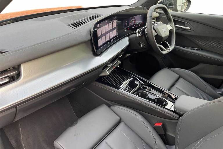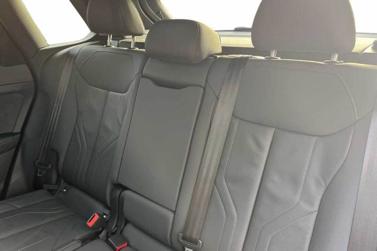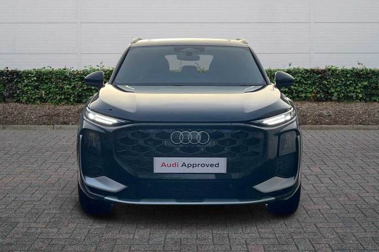 Available from 29/01/2026. Audi Q3 Estate 1.5 TFSI S Line 5dr S Tronic in Mythos black, metallic. Specification Includes Without memory function,Operating permit, alteration,Full paint finish,Full paint finish,Without parking assistance/garage parking assist,Steering wheel operating unit, gloss black,Front cross-traffic assist,Reversing camera,Upholstery in leather/artificial leather combination with S emblem,Driver Assist Pack,Interior S line with sport seats in leather/artificial leather combination, Black,LED headlights plus with LED rear lights pro,Function package,S line exterior,Storage and Luggage Compartment package,Aluminium look interior elements,Privacy Glass,Ambient lighting package pro,Sports seats in front,Special control,Introductory volume,Illuminated Audi rings, rear,Hold assist,Pedals in stainless steel,Door sills with aluminium inserts at the front, illuminated, with inSin logo,Acoustic glass for front door windows,Equipment package for Great Britain,Ramp-up scenario A,Internal control code,Tech plus,Projection light in the exterior mirrors,Progressive steering,Sport leather steering wheel, 3-spoke, flat top and bottom, with multifunction and shift paddles,Increase in initial standard fuel filling,S line exterior styling,Loading sill protector in stainless steel,Panoramic sunroof,Front seats manually adjustable,Swerve assist and turn assist,Auto-dimming rearview mirror,3-point seat belts in front, with pretensioner and electric height adjustment,19in x 8.5J '10-spoke aero' design alloy wheels, gloss turned finish in black,Rear seat bench plus with centre armrest and cup holder,Inlay, aluminium Divergence, dark,Front head restraints,Front and rear side airbags with head airbags and front interaction airbag,Steering wheel trim in chrome look, side parts in perforated leather, contrast stitching,Lane departure warning with emergency assist,Headlining in black cloth,Exterior mirrors, electrically adjustable, heated and folding, automatically dimming,Interior elements in Dinamica microfibre and artificial leather,4-way lumbar support for the front seats,Proactive occupant protection, front, side and rear,Side assist with exit warning and rear cross-traffic assist,Park assist plus with parking system with 360° display,LED headlights plus,Adaptive cruise control,LED rear lights pro,Control number for comfort package,Feature package,Assist package Drive and Park plus,Assist package, protective and warning systems plus,Interior equipment