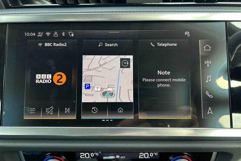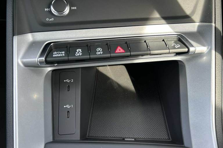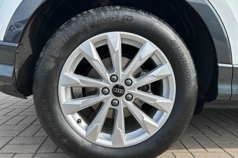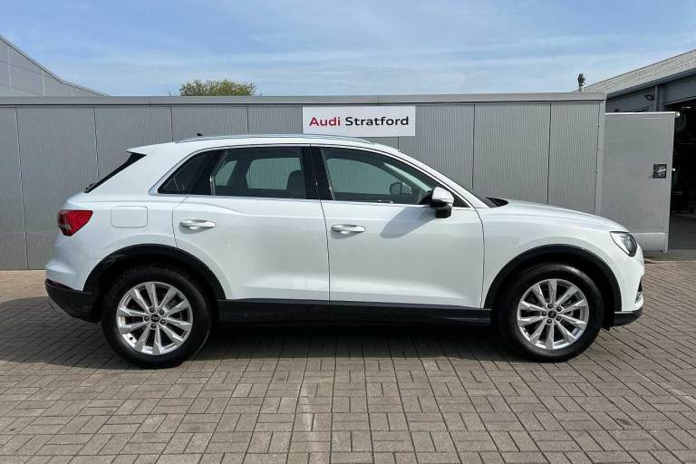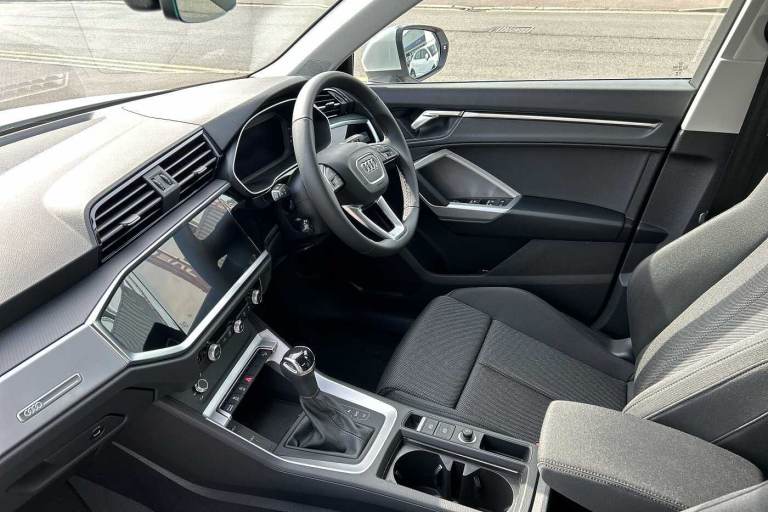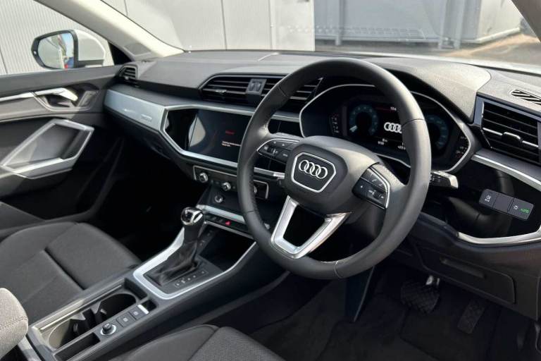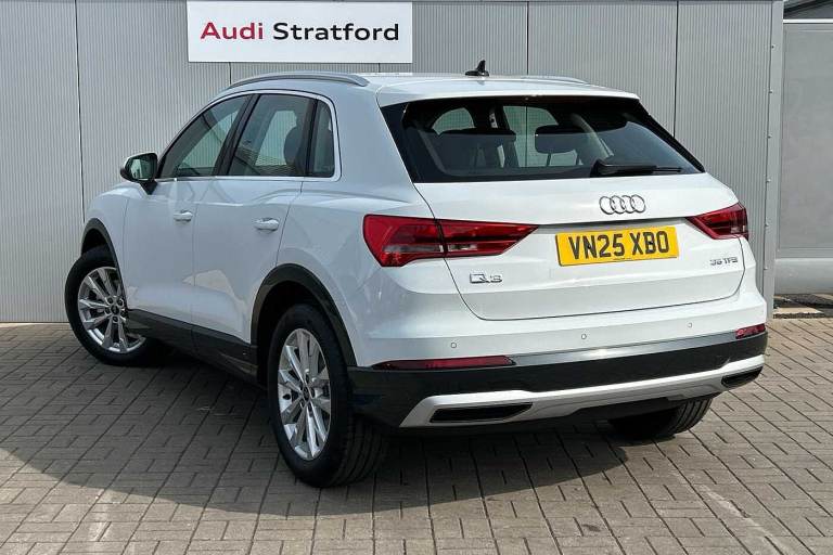 Available from 28/10/2025. Audi Q3 Estate 35 TFSI Sport 5dr S Tronic in Glacier White Metallic. Specification Includes Equipment options subset for Great Britain,18in x 7.0J '5-double-arm' design alloy wheels with 235/55 R18 tyres,Ambient Lighting Pack,DAB radio,Front Sport seats,Hill descent control,Hill Hold Assist,Smartphone interface,Leather steering wheel in 3-spoke design with multifunction plus,Auto-dimming rearview mirror,Front centre armrest,Door mirrors - electrically adjustable, folding, heated and auto-dimming,Tyre-pressure warning light,4-way electric lumbar support,MMI navigation plus with MMI touch display,Rear Parking Sensors,Headlights with LED technology,LED daytime running lights,Light and rain sensors,Cruise control system and speed limiter,Dual-zone electronic climate control,Audi virtual cockpit,Bluetooth Interface.