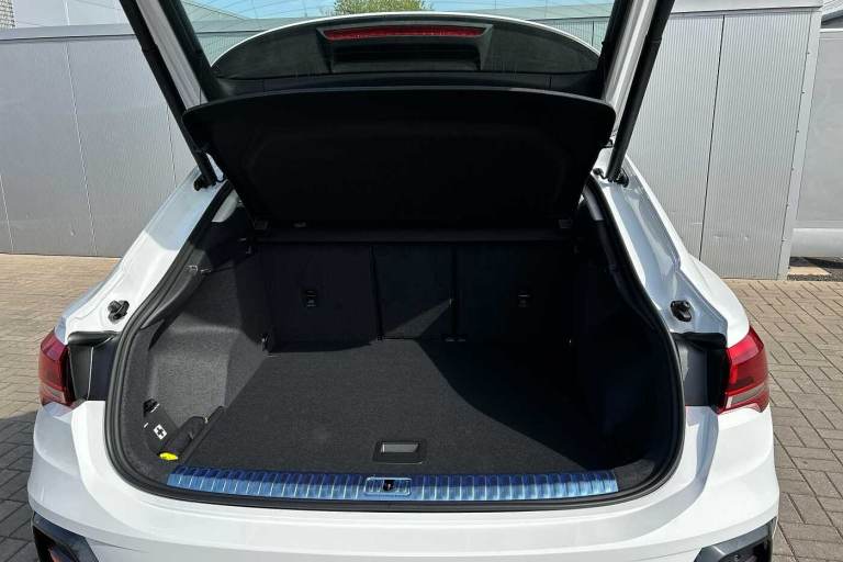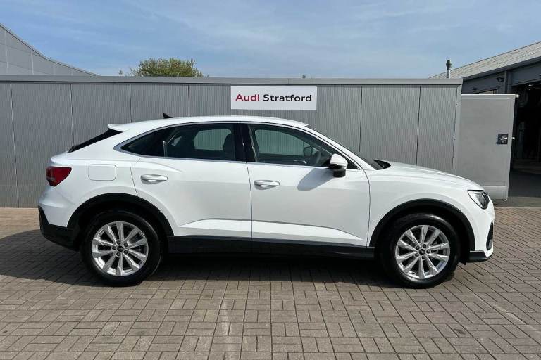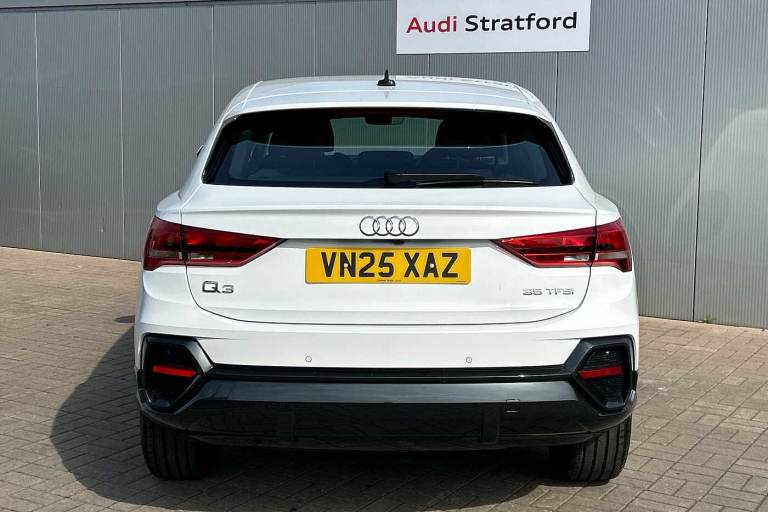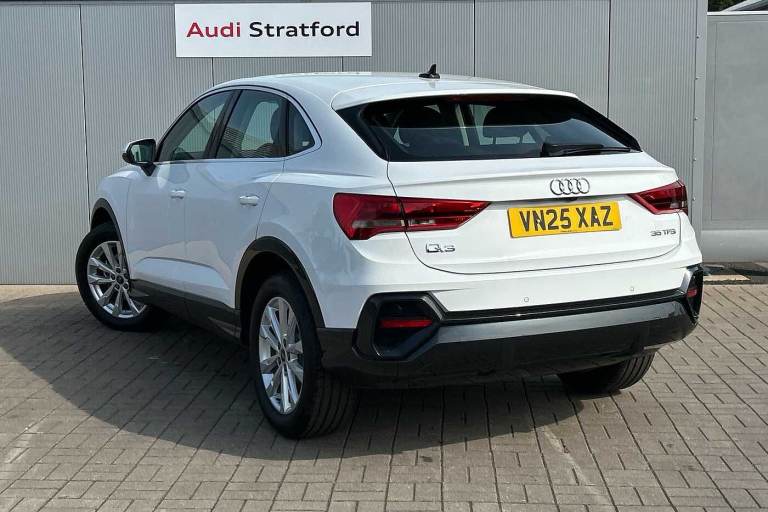 Available from 05/11/2025. Audi Q3 Sportback 35 TFSI Sport 5dr S Tronic in Arkona white, solid. Specification Includes Rear-view camera,Technology Pack,Heated front seats,Parking System Plus,SONOS Premium Sound System,Audi Phone Box with wireless charging,Equipment options subset for Great Britain,18in x 7.0J '5-double-arm' design alloy wheels with 235/55 R18 tyres,Ambient Lighting Pack,DAB radio,Front Sport seats,Hill Hold Assist,Smartphone interface,Leather steering wheel in 3-spoke design with multifunction plus,Power-operated tailgate,Auto-dimming rearview mirror,Front centre armrest,Door mirrors - electrically adjustable, folding, heated and auto-dimming,Tyre-pressure warning light,4-way electric lumbar support,MMI navigation plus with MMI touch display,Headlights with LED technology,LED daytime running lights,Light and rain sensors,Cruise control system and speed limiter,Audi virtual cockpit.