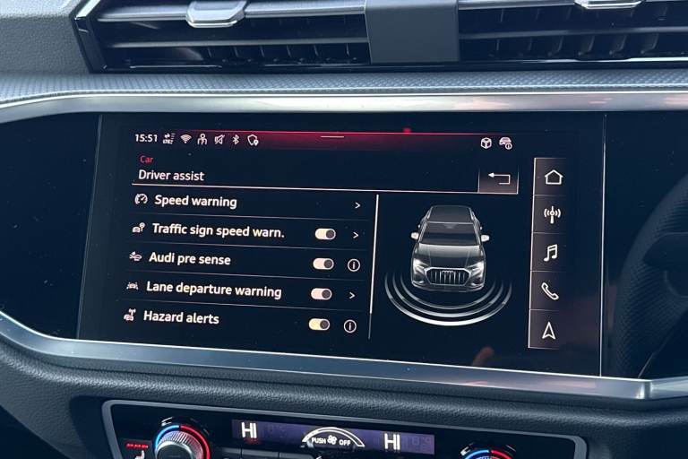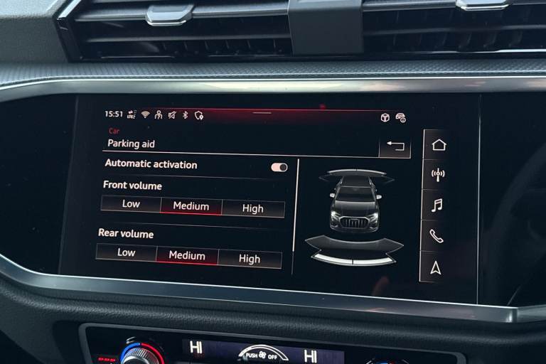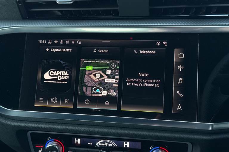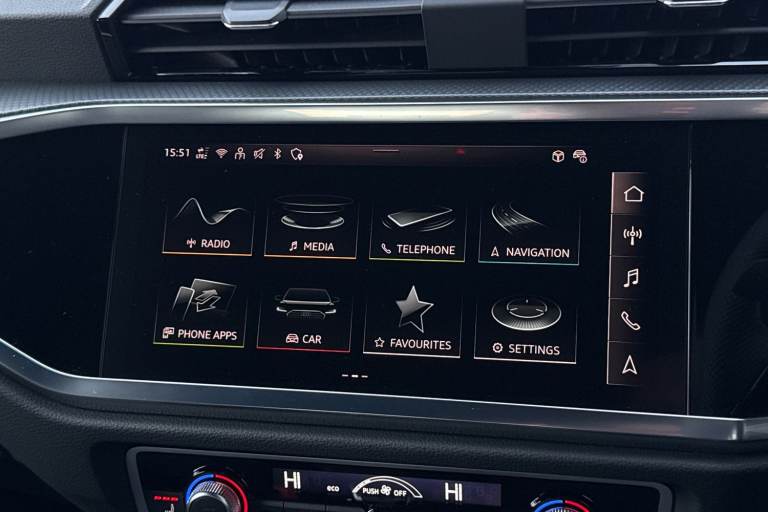 This Approved Used Audi Q3 2.0 TDI 35 Black Edition S Tronic is a fantastic choice for those seeking a premium SUV with a bold, stealthy look. Finished in striking black paint, this Black Edition model features a dark, stylish trim that perfectly complements its modern design. The exterior is enhanced by the impressive 20-inch 5-V-Spoke Star Design alloy wheels, which give the car a sporty and confident stance on any road. Under the bonnet, the efficient 2.0 TDI engine provides plenty of power for long journeys while remaining economical, paired with the smooth S Tronic automatic gearbox for an easy driving experience. Inside, the cabin is packed with high-quality features to make every trip more enjoyable. You will love the SONOS premium sound system, which delivers incredible audio quality for your favourite music. For your comfort, the front seats are heated, making those cold morning starts much more pleasant. Practicality is also a priority, featuring a Rear Power Tailgate that opens at the touch of a button for easy loading. Parking is made simple with the integrated Rear Camera and parking sensors, giving you a clear view of your surroundings. On the motorway, the Cruise Control system helps you maintain a steady speed with ease. Finally, the Audi smartphone interface allows you to connect your phone quickly for navigation and calls. This Q3 is a perfect blend of style and daily usability. Rear View Camera Heated Front Seats Powered Tailgate SONOS Soun...
