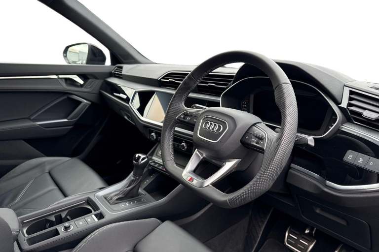 This Audi Q3 Black Edition comes finished in Daytona Grey and is now available from Carlisle Audi. This stylish SUV boasts a powerful yet efficient 2.0 litre diesel engine, allowing you to push an impressive 150PS. The exterior of this vehicle comes fitted with a black exterior pack, this includes a black grille, badging and details and is complimented by the 20"" alloy wheels that allow you to stand out from the crowd. This Audi comes with Black Roof Rails, adding to the practicality of the vehicle. Inside, youll find the front seats fitted with 4-way lumbar support, allowing you to sit in comfort no matter the length of your journey. This vehicle comes with a multifunction steering wheel, allowing you to easily control your music, cruise control and your Audi Virtual Cockpit. Here you can see information about your car, phone connectivity and navigation system, keeping you informed whilst on the move. This Q3 also comes with the Audi Smartphone Interface which includes use of Android Auto and Apple Carplay, allowing you to stay connected easily whilst on the move. This vehicle is compliant with the Clean Air Zone (CAZ) or Ultra Low Emission Zone (ULEZ) standards! Not only will it help you avoid penalties and fines when traveling in the city, but it also means youll be doing your bit to help reduce emissions. With compliance standards becoming increasingly strict, making sure your car is up to scratch is more important than ever.