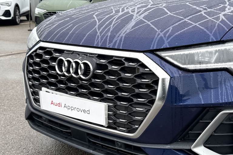 Finished in striking Navarra Blue, this Audi Q3 Sportback S line is powered by the refined 1.5 TFSI petrol engine producing 150 PS, paired with the smooth and responsive S tronic automatic gearbox. It delivers an ideal balance of performance, efficiency and everyday comfort, whether in town or on the motorway. The confident stance is enhanced by 19-inch alloy wheels and S line sport suspension, offering a composed yet engaging drive. Signature S line styling, paired with LED headlights, LED daytime running lights and dynamic rear indicators, gives the Q3 Sportback a sharp and modern road presence. Inside, the cabin feels sporty and premium, featuring S line front sport seats with embossed logos, heated front seats and aluminium interior elements. Ambient lighting and the 3-spoke leather multifunction steering wheel with contrast stitching add to the refined feel, while the spacious 530-litre boot ensures excellent practicality. Technology is seamlessly integrated with Audi Virtual Cockpit, MMI Navigation Plus displayed on a 10.1-inch touchscreen, wireless Apple CarPlay and Audi Phone Box with wireless charging. Parking System Plus with rear-view camera makes manoeuvring easy, while the SONOS Premium Sound System delivers outstanding audio quality. A comprehensive suite of driver assistance systems completes this impressive specification. For more information on this Audi Q3, please give us a call and a member of our friendly sales team will be more than happy to help you...