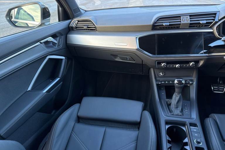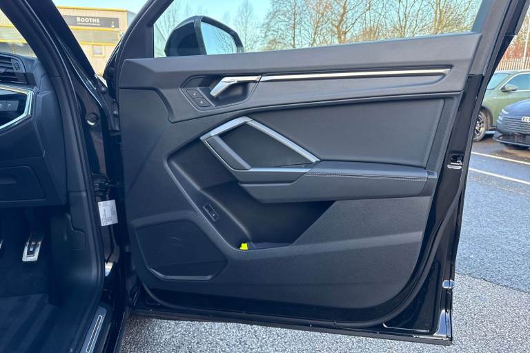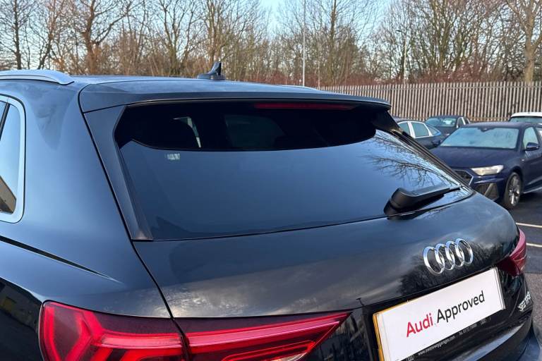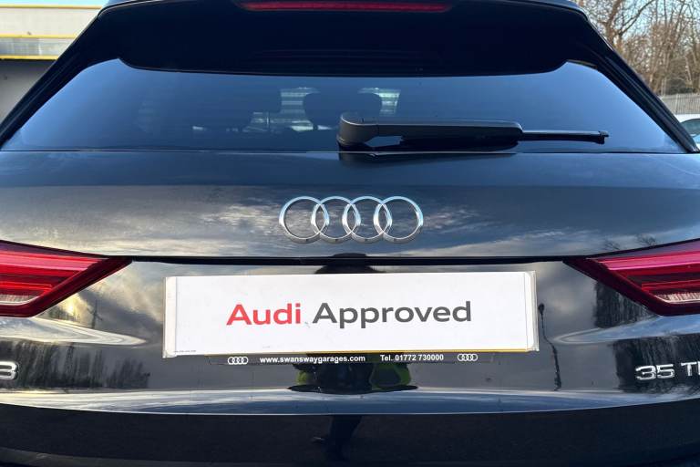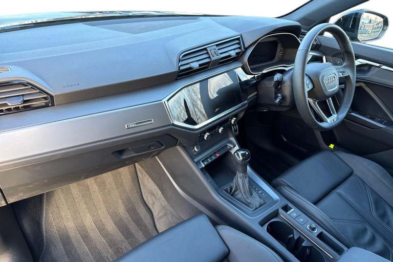 Introducing this Approved Used Audi Q3 S line 35 TFSI S tronic, finished in the elegant Mythos Black paintwork, it delivers a refined blend of sporty design, advanced technology, and everyday versatility, making it an excellent choice within the premium compact SUV segment. The exterior is defined by Audis distinctive S line styling, with striking LED headlights enhance visibility while reinforcing the vehicles sharp, modern design language. Large 19"" alloy wheels sit perfectly within the sculpted arches, adding further visual impact, while aluminium roof rails provide both a stylish finish and practical carrying capability for active lifestyles. Power comes from the smooth and responsive 1.5-litre TFSI petrol engine, producing 150 PS and paired with Audis refined S tronic automatic transmission. The result is a driving experience that feels both lively and composed, ideal for urban driving as well as longer motorway journeys. Audi Drive Select allows you to tailor the vehicles character to suit your mood or road conditions, offering a choice of driving modes for enhanced comfort or dynamic response. Inside, the cabin reflects Audis renowned build quality and intelligent layout. Dual-zone climate control ensures both driver and passenger can enjoy their preferred temperature, while the elevated seating position provides excellent visibility and comfort. Seamless connectivity is delivered via wireless Apple CarPlay and Android Auto, keeping navigation, music, and commu...