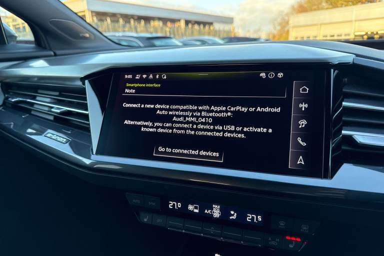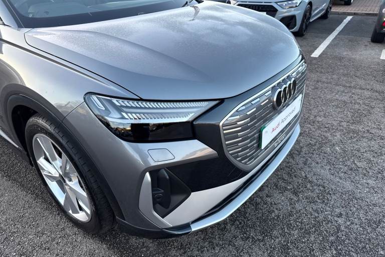 Have a look at this Audi Approved Q4 S Line 40 e-tron in Typhoon grey with its 20"" 5-Y-spoke alloy wheels which look superb out on the roads. The Matrix LED headlights with LED rear lights create thats trong visibility in all weather conditions. The climate control allows you to adjust to your prefered climate on any journey. This Q4 comes equipped with some fantastic features, such as the Technology pack which does include the Sonos premium sound system, for that excellent sound experience that everyone can enjoy. Another great feature, is the reversing camera which creates that additional vision and assists greatly whilst maneuvering those tighter spaces. The heated front seats are perfect for those cooler mornings ahead. Planning and following routes is a breeze, thanks to the MMI Navigation Plus with MMI Touch. ISOFIX child seat mounts are fitted to the front passenger and outer rear seats of this Q4, making it the perfect family vehicle. DAB/FM radio is fitted to this vehicle which gives a larger variety of stations for all passengers and driver to listen to and enjoy on any journey in this vehicle. The interior is fitted with the gorgeous seats throughout creating a comfortable look and feel to this vehicles cabin. The multimedia interface allows you to access different media, such as Apple Carplay and Android Auto, which allows you to use apps like Spotify, Google Maps, Apple Music and other apps also. The Audi drive select feature lets you choose your prefered dr...