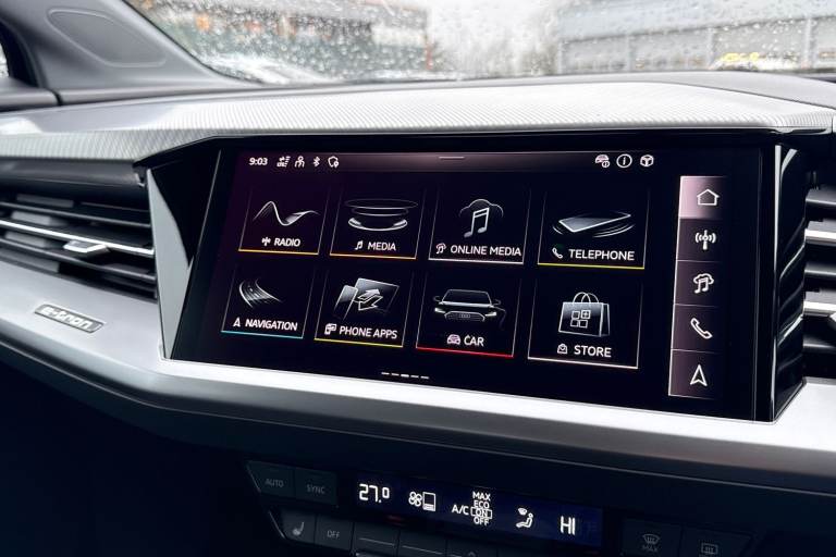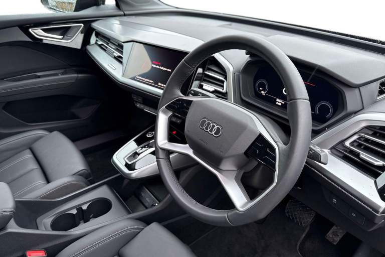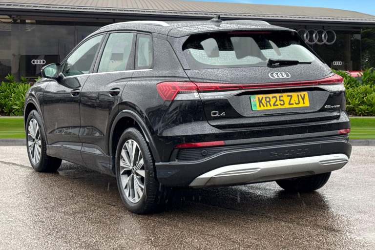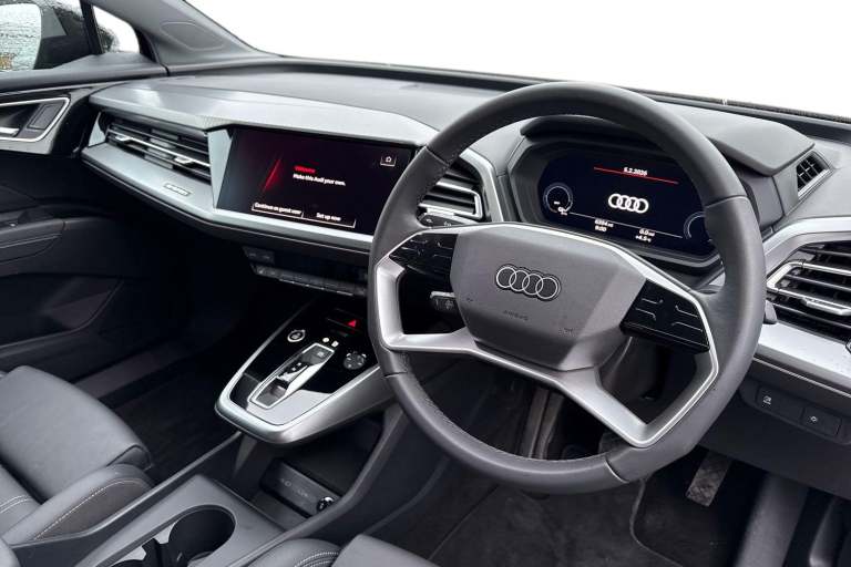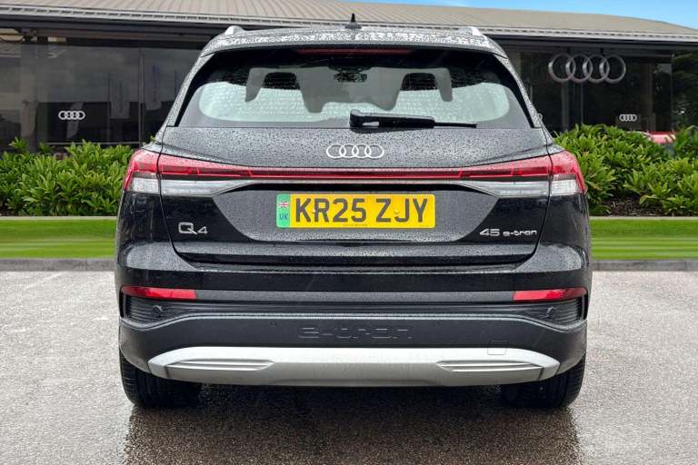 Joining our Audi Approved range, is this Q4 Sport 45 e-tron in Mythos Black with its 19"" 5-W-spoke alloy wheels which look superb out on the roads. The LED headlights with LED rear lights create that strong visibility in all weather conditions. The climate control can be adjusted to your prefered climate on all journeys. This Audi Q4 has some fantastic features, such as the heated front seats which are perfect for those cooler mornings. The reversing camera creates that additional vision and assists greatly whilst maneuvering those tighter spaces. Connectivity is made seamless on all journeys, thanks to the Bluetooth Interface. The multimedia interface allows the driver and front passenger to access a range of different media, such as Apple Carplay and Android Auto, allowing you to use apps like Spotify, Google Maps, Apple Music and other apps also. The Audi drive select feature lets you choose your prefered drive mode on any journey, for a more personalised driving experience. The driver assist can also be adjusted to your driving preference on all journeys in this Q4. DAB/FM radio is fitted to this vehicle which gives a larger variety of stations for all passengers and driver to listen to and enjoy on any journey in this vehicle. The interior is fitted with the gorgeous seats throughout creating a comfortable look and feel to this vehicles cabin. ISOFIX is fitted to the outer rear seats of this vehicle which...