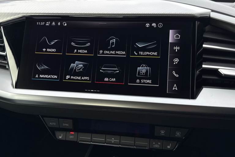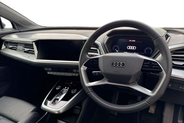 This stunning Audi Q4 Sportback e-tron offers a fantastic entry into the world of electric driving, combining a sleek design with impressive range. Finished in a striking Blue paint, this Sportback model features a more aerodynamic shape that looks modern and stylish on the road. Power comes from an efficient 82kWh battery, providing plenty of range for both daily commutes and longer weekend adventures. The exterior is enhanced by 19-inch 5-W-Spoke Aero Design alloy wheels, which are specially crafted to improve efficiency while giving the car a premium look. Loading the car is made simple with the Rear Power Tailgate, allowing you to access the generous boot space even when your hands are full. Parking is also a breeze thanks to the built-in Rear View camera and parking sensors, giving you a clear view of your surroundings. Inside the cabin, you will find a quiet and refined environment designed for total comfort. On cold mornings, the Heated front seats provide a warm and welcoming start to your journey. For those longer motorway trips, the Cruise control system helps you maintain a steady speed effortlessly. Connectivity is at your fingertips with the Audi smartphone interface, making it easy to use your favorite apps through the cars clear display screen. Geyser Blue Heated Front Seats Audi Drive Select Rear-View Camera Power Operated Tailgate Book your test drive today This vehicle is compliant with Clean Air Zone (CAZ) or Ultra Low Emission Zo...