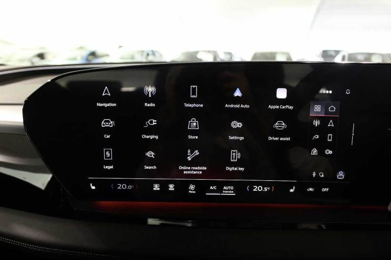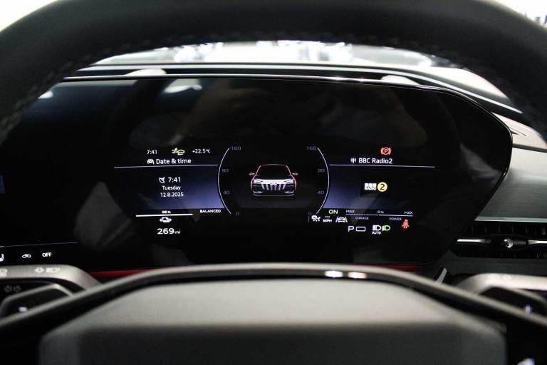 Available from 28/01/2026. Audi Q6 e-tron Estate 285kW Quattro 100kWh S Line 5dr Auto in Magnet grey, solid. Specification Includes Augmented reality head-up display,Ambient lighting package plus with dynamic interaction light,Sport leather steering wheel, 3-spoke, flat top and bottom with multifunction and shift paddles,20in x 8.5J 10.0J '5-arm' structure style, graphite grey, gloss turned finish alloy wheels with 255/50 285/45 R20 tyres,Bang & Olufsen premium sound system with 3D sound and integrated headrest speakers,Surround view cameras,Hold assist,quattro,Seat heating, front and rear,LED headlights plus,Adaptive cruise control,LED rear lights pro,3-zone deluxe automatic air conditioning,Audi virtual cockpit plus.
