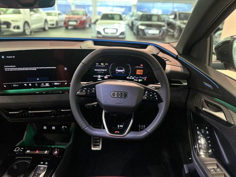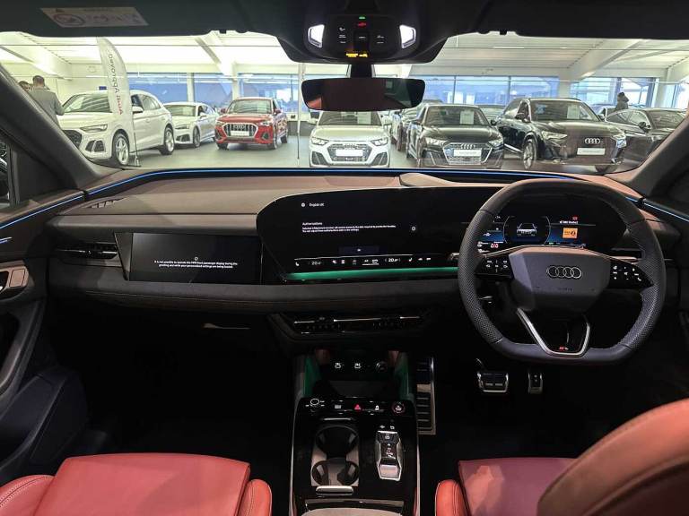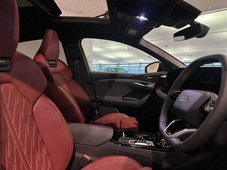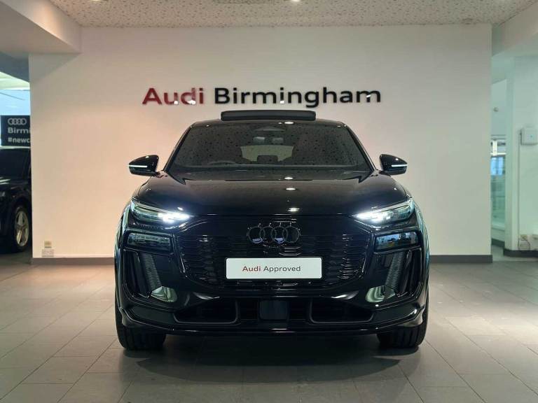 Available from 09/03/2026. Audi Q6 e-tron Sportback Special Editions 360kW SQ6 Quattro 100kWh Edition 1 5dr Auto in Mythos Black Metallic. Specification Includes Operating permit, alteration,21in x 9.0J 5-arm 'aero' metallic black gloss turned finish Audi Sport alloy wheels with R21 tyres,Full paint finish,Seat belts,Accent surfaces and control buttons, Gloss Black,Fine Nappa Leather with diamond stitching,S interior package with front sport seats plus in Arras red Fine Nappa leather with integrated headrest with diamond stitching in Steel grey,Sport seats plus, front,Upper and lower interior elements, Dinamica microfiber,Internal control code,Internal control code,Mythos Black Metallic, in full paint finish,Decorative inserts in Anthracite technical fabric,Front head restraints,Upper part of instrument panel, Black with contrasting stitching,Lumbar support, pneumatically adjustable with massage function for the front seats,Interior equipment 15,Equipment options subset for Great Britain.