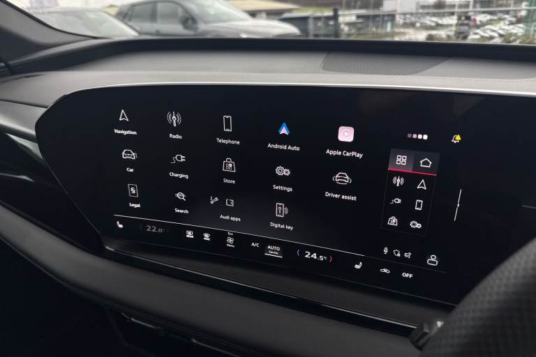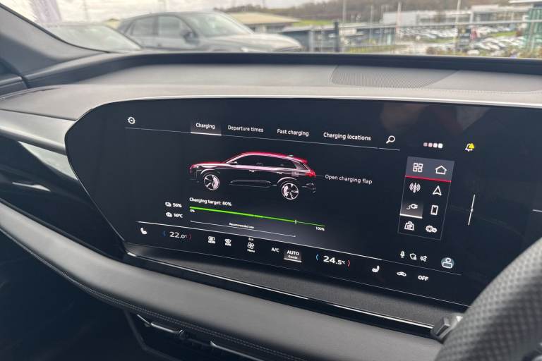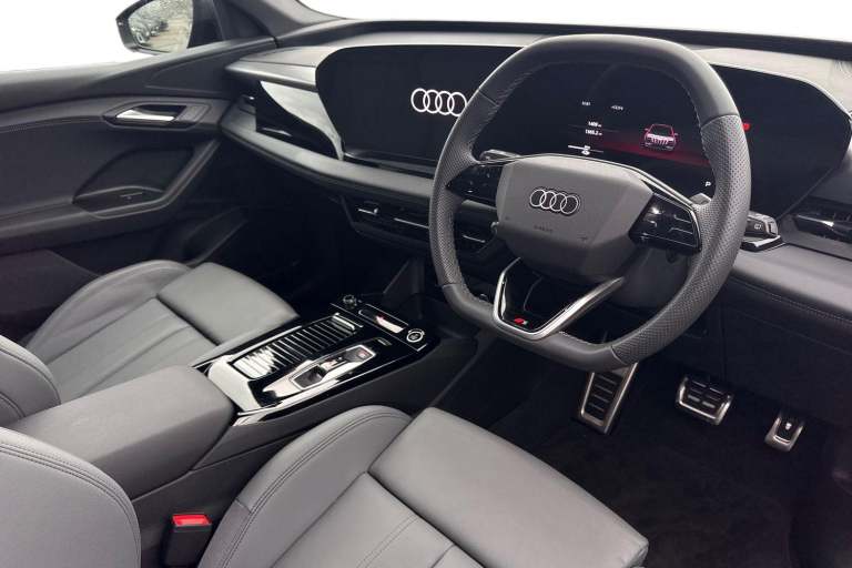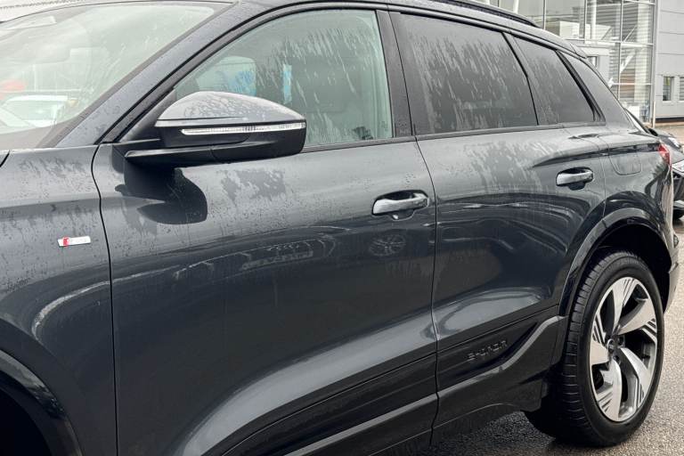 Introducing the Audi Q6 e-tron S line in stunning Manhattan Grey where electric performance meets unmistakable Audi presence. Powered by a refined 185kW electric drivetrain, it delivers smooth, confident acceleration supported by Audi Drive Select and advanced driver assistance for an effortlessly composed drive. Sitting on striking 20"" alloy wheels with comfort suspension, the Q6 e-tron balances sporty stance with exceptional ride quality. LED Headlights Plus with Digital Daytime Running Lights and dynamic rear indicators ensure youre seen in style, day or night. Step inside to a contemporary cabin crafted around you. Twin leather sport seats with integrated headrests and embossed S logos set the tone, complemented by black headlining, anthracite brushed aluminium inlays and illuminated S-line door sills. Stainless steel pedals, a flat-top-and-bottom S-line steering wheel and soft-touch leatherette surfaces elevate every journey. Technology is where the Q6 truly shines: a high-resolution 14.5"" OLED MMI touchscreen, Audi Virtual Cockpit Plus, 3-zone climate control with remote preconditioning, wireless charging, the Audi App Store, Digital Key and a premium Audi Sound System all come as standard. For added convenience, enjoy Park Assist Plus with a 360° camera, electric tailgate, Plug & Charge capability and dual charging ports, including an 11kW AC and rapid 270kW DC option. For more information on this Audi Q6 E-Tron, please give us a call and a member of our friendl...