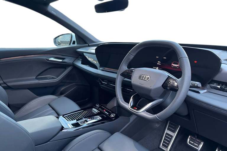 Carlisle Audi is pleased to introduce this Audi Q6 e-tron S line, finished in the modern Daytona Grey. This model comes with a substantial 100 kWh battery, offering an impressive range of up to 348 miles when new. Charging is convenient, taking approximately 15 hours for a full charge at home using a 7kW charger, while an Ultra Rapid Public Charger can charge you up to 80% in just 24 minutes. This Q6 can go from 0-62mph in a swift 5.9 seconds, perfect for those looking to travel both long and short distances. This Q6 stands out from the crowd with its 20"" alloy wheels and Privacy Glass, adding to the modern exterior. Inside, youll find a flat top and bottom multifunction steering wheel allowing you to easily control your music, cruise control and Audi Virtual Cockpit. Here you can see information about your car, phone connectivity and navigation system. The front seats are equipped with 4-way lumbar support, providing comfort no matter the length of your journey. The dash is equipped with an MMI touchscreen which allows you to easily control your Audi Smartphone Interface, allowing you to connect your phone using either Android Auto or Apple Carplay.