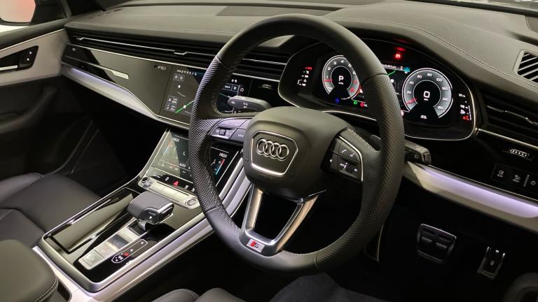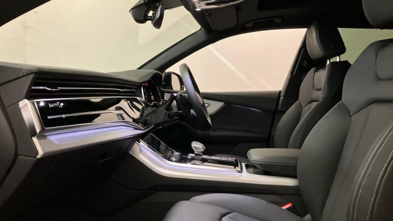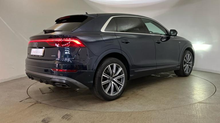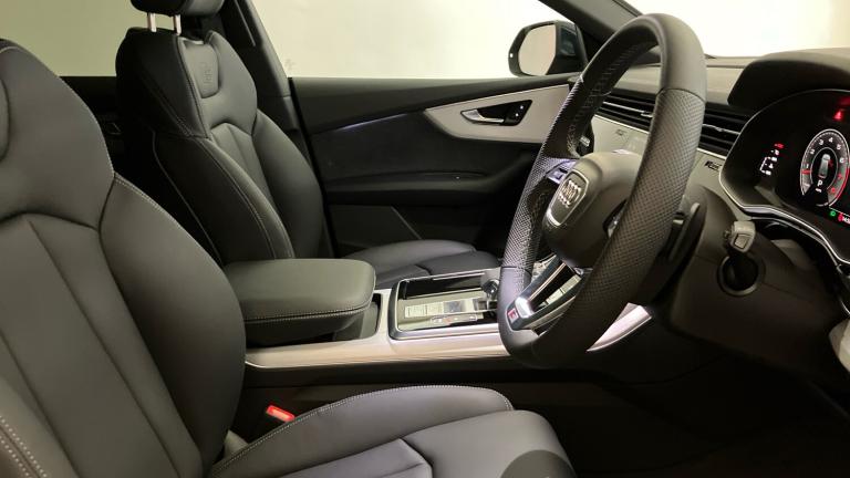 ***AUDI APPROVED USED***This is a stunning 2025 Audi Q8 S line 55 TFSI quattro finished in striking Waitomo Blue metallic, it is our very own demonstrator. Combining bold design, luxurious comfort, and exhilarating performance, it offers everything you would expect from Audi’s flagship SUV.Powered by a 340 PS 3.0-litre V6 petrol engine with smooth Tiptronic automatic transmission and quattro all-wheel drive, the Q8 delivers effortless performance and confident handling in all conditions. The exterior features the S line styling package, giving a sporty, dynamic appearance, complemented perfectly by the panoramic sunroof, which floods the interior with natural light.Inside, the cabin is a showcase of Audi’s craftsmanship, with premium materials, advanced technology, and a driver-focused layout. Highlights include the Audi Virtual Cockpit, large infotainment display, high-quality leather upholstery, and multi-zone climate control. Practicality is also superb, with generous boot space and a flexible, family-friendly interior.This Q8 demonstrator is in immaculate condition and represents a fantastic opportunity to own a virtually new, fully-specified vehicle at a great value. A perfect combination of style, luxury, and performance..Air Conditioning, Climate Control, Metallic Paint, Cruise Control, Satellite Navigation, Alloy Wheels, Leather Seats, Heated Seats, DAB Radio, Bluetooth, Panoramic Roof, Parking Sensors, Stop Start, Full Service History, USB, Manufacturer Approved, Electric Seats, Apple-Android Play, Rear Camera, Electric Opening Tailgate, Auto Lights, Electric Folding Mirrors, Lane Departure, Pre Crash Prevention, Rain Sensors& 4x4, Front/rear floor mats, Electric front+rear windows, Rear wiper, Rain and light sensors, Privacy glass - dark tinted rear and rear side windows from B-pillar backwards, Heat insulating glass in windshield, Traction control, Hill descent control, Electromechanical parking brake, Electronic Stability Control (ESC) including ABS, ASR and EDL, Adaptive sport air suspension, Natural voice recognition, Smartphone interface includes wireless Apple carplay/Android Auto, Audi connect with Amazon Alexa Integration, Bluetooth
