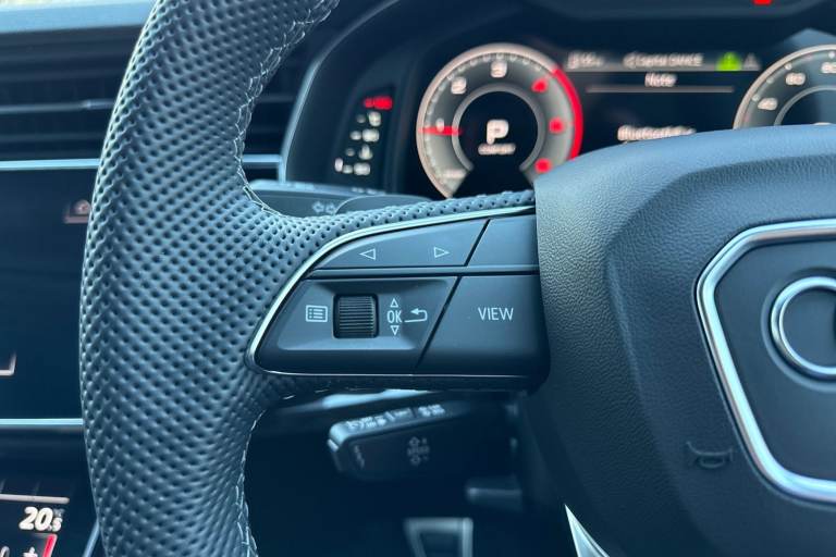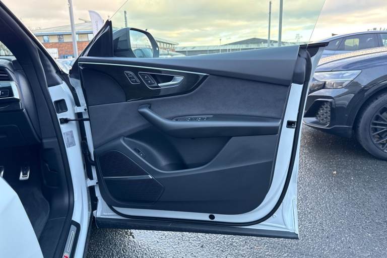 Carlisle Audi is very pleased to introduce this Audi Q8 Black Edition, finished in the eye catching Glacier White. This Q8 boasts a powerful 3.0 litre diesel engine, paired with the smooth Quattro all wheel drive system, that allows you to push 286PS. This vehicle comes with an impressive 0-62mph acceleration in a mere 6.1 seconds, perfect for thrill seekers. This vehicle sits on a set of upgraded 23"" 10-spoke trapezoidal black wheels, allowing you to stand out from the crowd. This vehicle also comes with practical black roof rails that contrast against the white paintwork. This vehicle also comes with the Parking Assist Pack that includes Parking Assist with Parking System Plus and a 360 Camera that makes parking and manoeuvring a doddle. This vehicle also comes with the Technology Pack that includes a head up display that projects important information such as your speed and the speed limit at eye level onto your windscreen, allowing you to keep your eyes on the road as you travel. The cabin comes with Multi-coloured Extended LED Interior Lighting Pack, adding to the modern look of the cabin. Alongside this is the Premium Sound System, allowing you to listen to all your favourite music in sublime quality. This vehicle is compliant with the Clean Air Zone (CAZ) or Ultra Low Emission Zone (ULEZ) standards! Not only will it help you avoid penalties and fines when traveling in the city, but it also means youll be doing your bit to help reduce emissions. With compliance s...