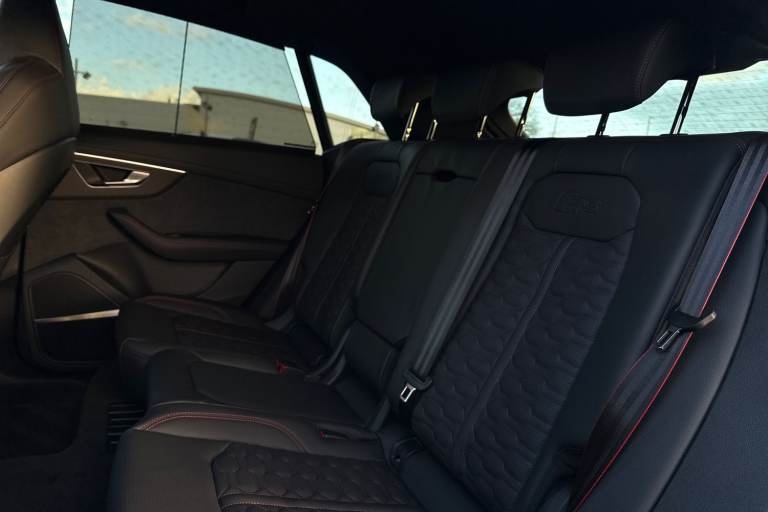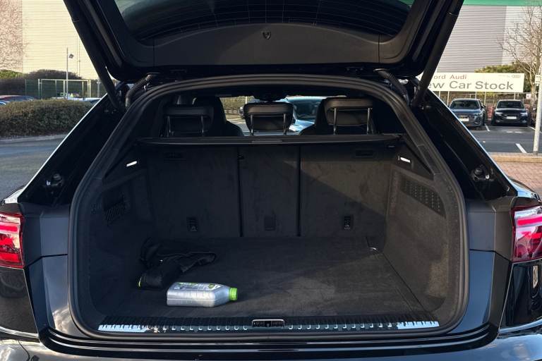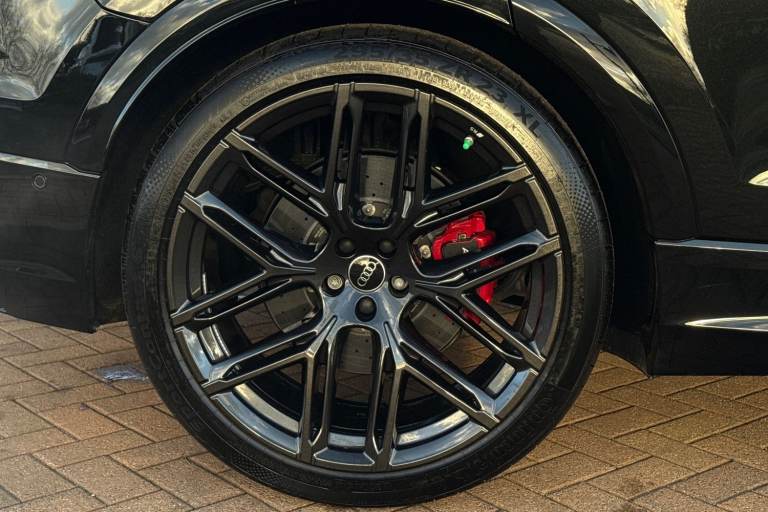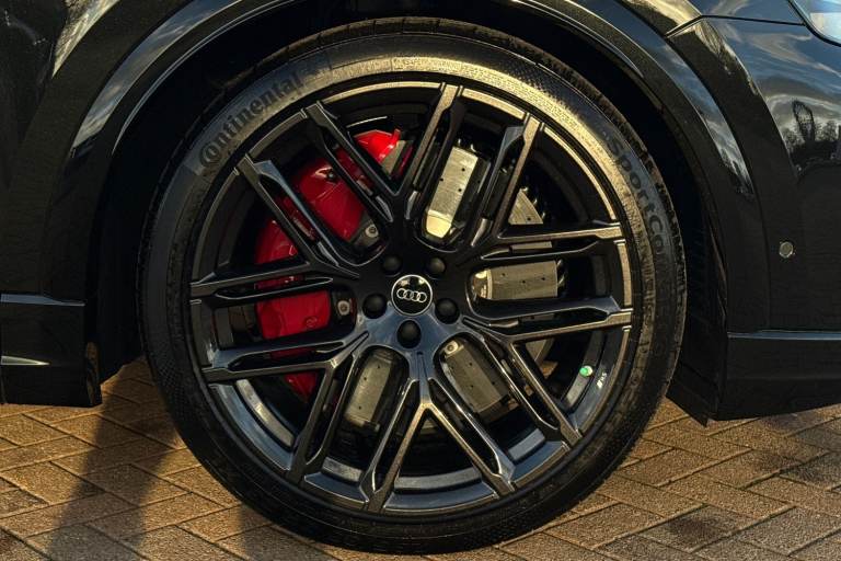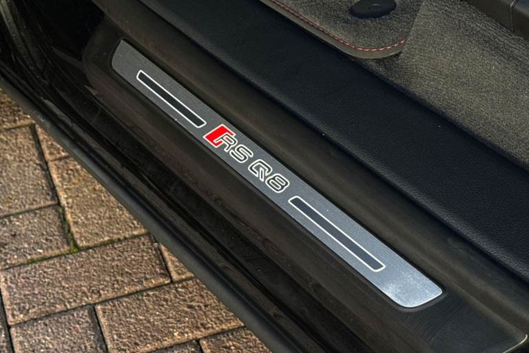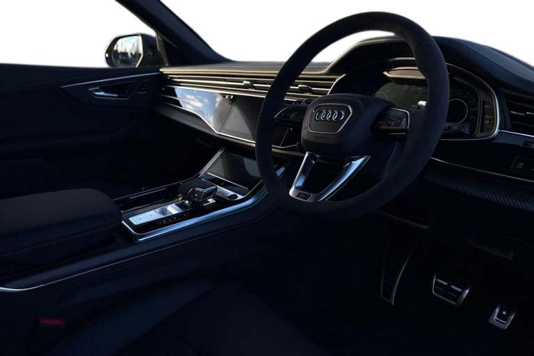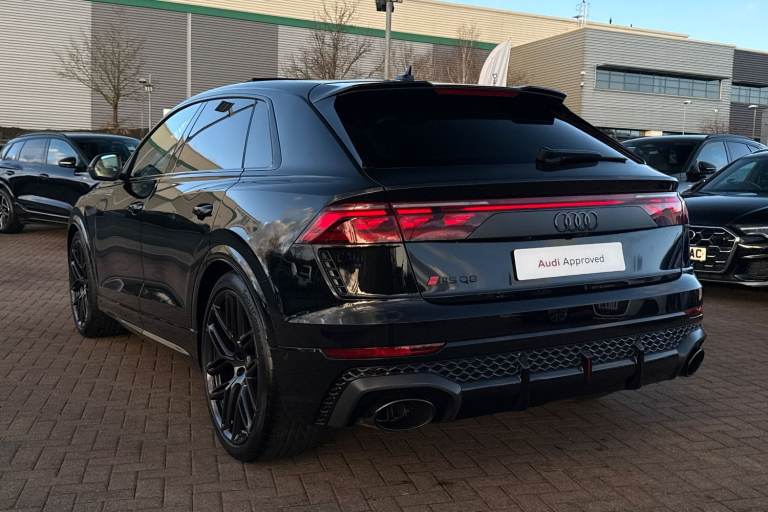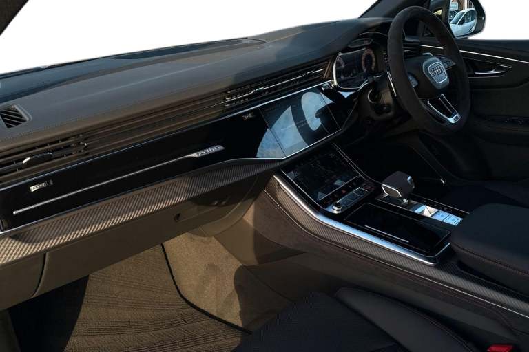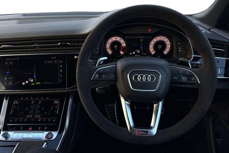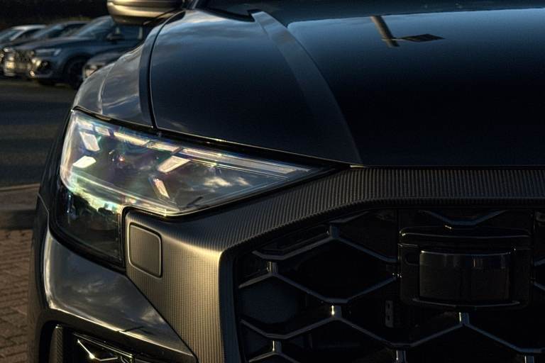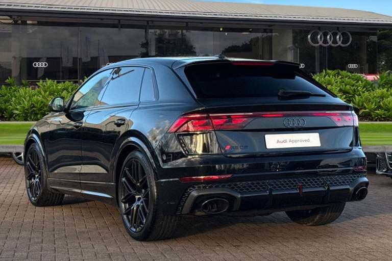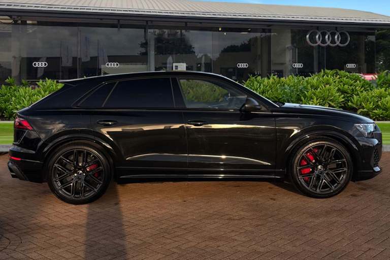 This Approved Used Audi RS Q8 Performance Carbon Vorsprung is a breathtaking example of Audi Sport engineering, finished in the timeless and commanding Mythos Black Metallic. Combining supercar-level performance with everyday luxury and practicality, this flagship RS SUV delivers an uncompromising driving experience. The Performance Carbon Vorsprung specification showcases Audis most advanced technology and craftsmanship, enhanced further by striking carbon exterior detailing that underlines its aggressive yet elegant presence. Inside, the cabin is elevated by the optional Red Design Pack, introducing bold contrast through red contrast stitching, RS detailing, and red brake calipers, creating a purposeful and sporty atmosphere that perfectly complements the RS character. Powered by Audis formidable V8 performance and paired with quattro all-wheel drive, the RS Q8 Performance offers relentless acceleration, exceptional grip, and refined comfort in equal measure. The Vorsprung trim ensures the very highest level of equipment, blending cutting-edge driver assistance systems, luxury materials, and immersive technology. Meticulously inspected and prepared as an Audi Approved Used vehicle, this RS Q8 Performance Carbon Vorsprung offers peace of mind alongside exhilarating performance and unmistakable road presence. This vehicle is compliant with Clean Air Zone (CAZ) or Ultra Low Emission Zone (ULEZ) regulations, meaning it produces low emissions and helps to improve air qua...