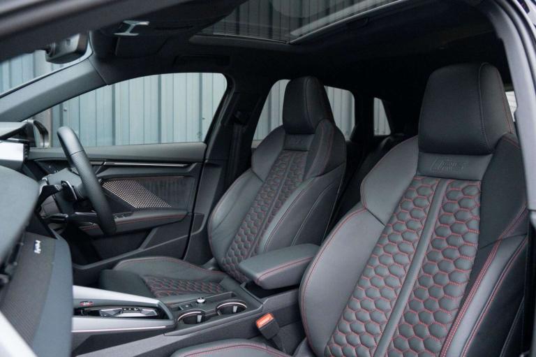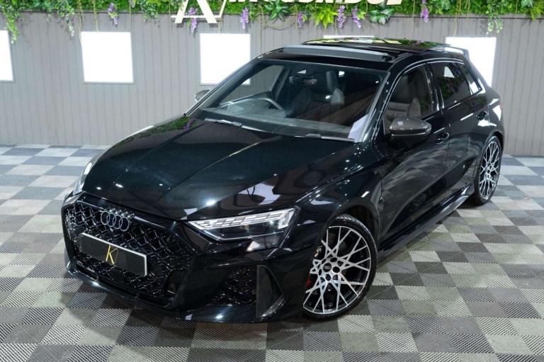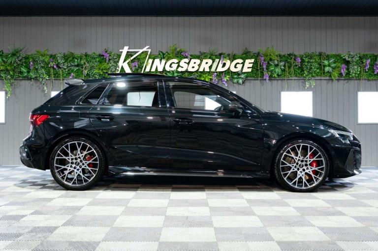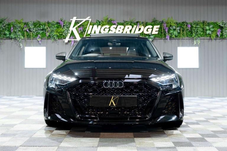 This 2025 Audi RS3 TFSI Carbon Vorsprung offers an exceptional ownership proposition with an incredibly low mileage of just 3500 miles, having been meticulously cared for by a single owner. This striking example is presented in the desirable Carbon Vorsprung trim, featuring a potent 2.5 litre petrol engine paired with Audi's renowned four wheel drive system, all meeting Euro 6 emissions standards. Inside, you'll find a wealth of premium features designed to enhance your driving experience, including the Audi Phone Box with wireless charging, automatic headlights activated by the light and rain sensor, and a luxurious panoramic sunroof. Comfort is assured with heated front seats, while the Technology Pack adds adaptive cruise control, a head up display, a rear camera for parking assistance, and a premium branded sound system.The performance of this RS3 is truly remarkable, highlighted by its rapid 0-60mph acceleration in just 3.8 seconds, demonstrating its dynamic capabilities. These impressive figures, combined with the comprehensive specification and excellent provenance, position this Audi RS3 TFSI Carbon Vorsprung as a superior choice for those seeking exhilarating performance and sophisticated luxury. We are rarely beaten on finance. We work with all major high-street lenders alongside a carefully selected panel of specialist providers to secure the most competitive package tailored to your circumstances. If you choose to arrange finance elsewhere rather than through Kingsbridge, a £599 administration fee will apply to cover processing and compliance documentation.Ask about our full paint correction service and Gyeon ceramic protection packages. We offer bespoke preparation options including paint protection film (PPF), vehicle wrapping, trackers, dash cams and Ghost immobilisers.A £199 Vehicle Assurance Charge applies to all vehicles. This may be included within the advertised price or added separately depending on the platform you have seen the vehicle on.Specification Notice: Vehicle specifications listed may differ from the actual specification fitted. If any feature is essential to your purchase decision, you must confirm this with us prior to committing to buy.