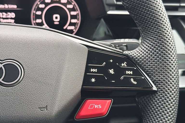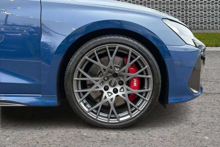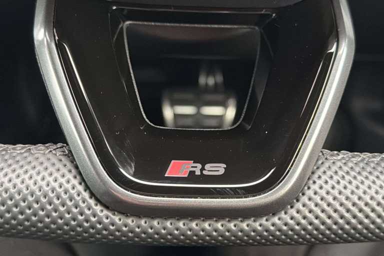 Darkened matrix LED headlights with dynamic light sequencing and dynamic turn signal (8JT), Engine compartment cover with carbon trim (NM5), LED rear lights with dynamic light sequencing and dynamic turn signal (8VP), Matrix LED headlights with dynamic light sequencing and dynamic turn signal (8G4), Roof edge spoiler in carbon (5J5), RS exterior features in carbon/Gloss Black (5L6), RS steel brakes, front with brake calipers in Gloss Red (1LH), RS steel brakes, rear with brake calipers in Gloss Red (1KF), Brake calipers painted Red (PC2), Ambient Lighting package pro (QQ3), Assist package, protective and warning systems (99H), Assistance package 2 (only for Audi and commercial vehicles) (99C), Audi Application Store and smartphone interface (IU4), Audi drive select (2H6), Audi phone box Light (9ZV), Audi virtual cockpit plus with additional RS layout (7J3), Black Styling package plus (4ZP), Climate Control package plus (98G), Convenience package 2 (only for Audi/Bentley/commercial vehicles) (98C), Daytime running lights (8K4), Head-Up Display (KS1), Hold assist (UH2), Light/rain sensor (8N6), Park assist with parking system plus (7X5), Reversing camera (KA2), RS sport suspension (1JR), RS sport exhaust system (0P8), Seat heating, front (4A3), SONOS 3D premium sound system (9VS), Sport seats, front (Q1D), Start-stop system (7L6)