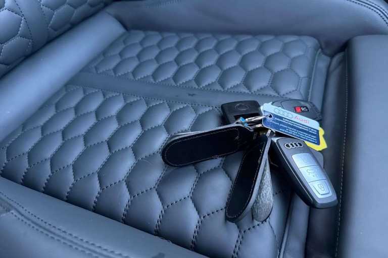 Adaptive cruise control (8T3), Anti-theft alarm (7AL), Assist package, protective and warning systems plus (99I), Assistance package 5 (only for Audi and commercial vehicles) (99F), Audi drive select (2I0), Convenience key with Safelock (4K6), Convenience package 2 (only for Audi/Bentley/commercial vehicles) (98C), Darkened matrix LED headlights with dynamic light sequencing and dynamic turn signal (8JT), Engine compartment cover with carbon trim (NM5), Exterior mirrors, electrically adjustable, heated and folding, automatic. dimming, with memory function (6XL), Front seats, electrically adjustable with memory function for the driver seat (3L4), Interior mirror, automatically dimming, frameless (4L6), LED rear lights with dynamic light sequencing and dynamic turn signal (8VP), Matrix LED headlights with dynamic light sequencing and dynamic turn signal (8G4), Panoramic glass roof (3FB), Proactive occupant protection, front, side and rear (7W7), Rear shock absorption for sports version (UB9), Roof edge spoiler in carbon (5J5), RS exterior features in carbon/Gloss Black (5L6), Side assist with exit warning and rear cross-traffic assist (79H), Top speed increased to 280 km/h (6Y4), Assist package Drive and Park pro and assist package, protective and warning systems plus (PZC), Comfort package pro (PG6), Ambient Lighting package pro (QQ3), Audi Application Store and smartphone interface (IU4), Audi phone box Light (9ZV), Audi virtual cockpit plus with additional RS layout (7J3), Black Styling package plus (4ZP), Climate Control package plus (98G), Daytime running lights (8K4), Head-Up Display (KS1), Hold assist (UH2), Light/rain sensor (8N6), Park assist with parking system plus (7X5), Reversing camera (KA2), RS sport exhaust system (0P8), RS steel brakes, front with brake calipers in Gloss Black (1LF), Seat heating, front (4A3), SONOS 3D premium sound system (9VS), Sport seats, front (Q1D), Start-stop system (7L6)