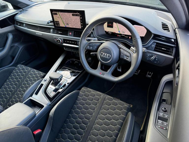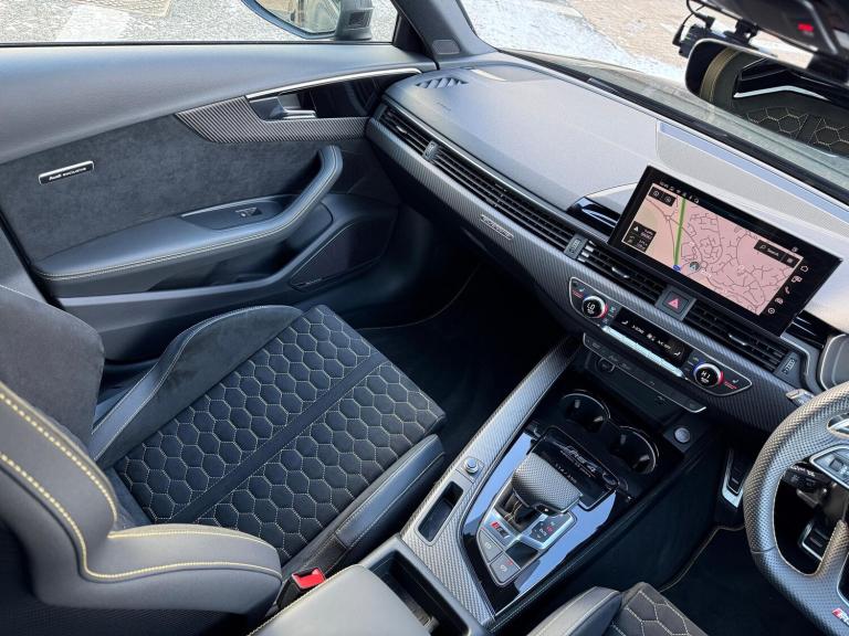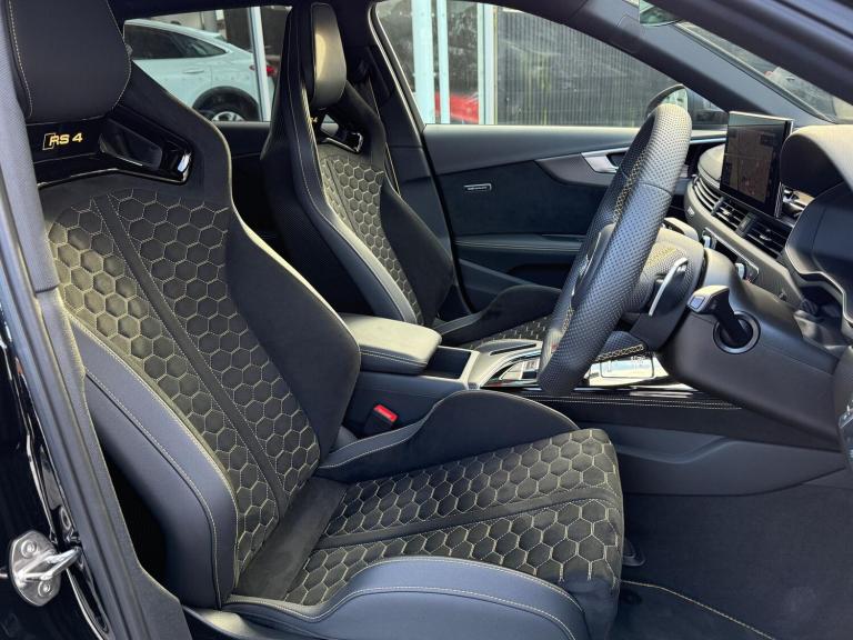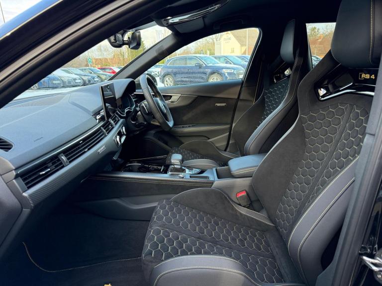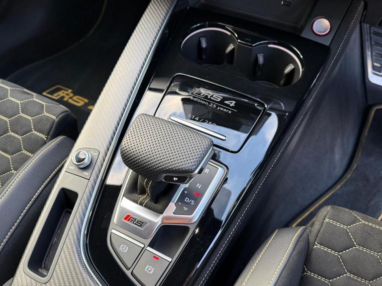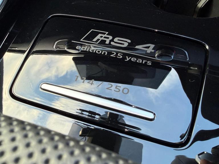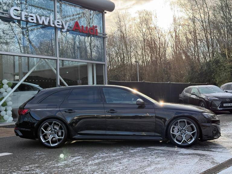 RS4 EDITION 25 YEARS, THIS CAR IS NUMBER 114 OUT OF ONLY 250, CARBON RACE SEATS,RS SPORTS SUSPENSION PRO COIL OVER MANUALLY ADJUSTABLE SUSPENSION, 470 BHP, RS CERAMIC BRAKES, RS SPORTS EXHAUST PLUS, TOP SPEED RESTRICTION INCREASE TO 186MPH, SATELLITE NAVIGATION, REAR PARKING CAMERA, ADAPTIVE CRUISE CONTROL, AUDI VIRTUAL COCKPIT, LANE DEPARTURE WARNING, 3 ZONE CLIMATE CONTROL, MATRIX LED HEADLIGHTS WITH DYNAMIC REAR INDICATORS, POWER OPERATED TAILGATE, FRONT AND REAR PARKING SENSORS, BANG & OLUFSEN SOUND SYSTEM, DAB / FM RADIO, APPLE CARPLAY, ANDROID AUTO, BLUETOOTH CONNECTIVITY, VOICE CONTROL, USB PORTS, WIRELESS PHONE CHARGER, INFOTAINMENT TOUCHSCREEN, LEATHER MULTI FUNCTION STEERING WHEEL WITH GEAR SHIFT PADDLES, MYTHOS BLACK METALLIC, BLACK ALCANTARA HONEYCOMB YELLOW CONTRAST STITCHED AND RS EMBOSSED UPHOLSTERY, HEATED FRONT SEATS, CARBON INTERIOR TRIMS, REAR PRIVACY GLASS, 20'' DIAMOND CUT RS ALLOY WHEELS, ELECTRICALLY ADJUSTABLE HEATED AND FOLDING EXTERIOR MIRRORS WITH CARBON CAPS, AUTOMATIC LIGHTS, RAIN SENSING WIPERS, ELECTRONIC HANDBRAKE WITH HILL HOLD, AUTO DIMMING REAR VIEW MIRROR, KEYLESS ENTRY WITH PUSH BUTTON START, AUDI DRIVE SELECT, TIPTRONIC AUTOMATIC GEARBOX, QUATTRO 4-WHEEL DRIVE, 2 KEYS, EURO 6, ULEZ COMPLIANT All Audi Approved used cars are offered with a 12-month warranty and roadside assistance. This car comes with the balance of the manufacturers warranty until 1/6/2028. Crawley Audi are delighted to offer this Audi RS4 Edition 25 years in Black over Black Alcantara Leather and has completed just 6000 miles. We are proud to be part of the Harwoods group, a family run business established in 1931. With four Approved Audi retailers within our group, we have access to over 400 vehicles. If this isn't the right car for you, please contact us and we will find it. Our group stock has spec to include, Leather, Heated Steering Wheel, Rear Entertainment, 360-degree camera, Comfort & Sound Pack, Panoramic Sunroof, Technology Pack, Head up Display