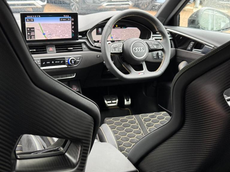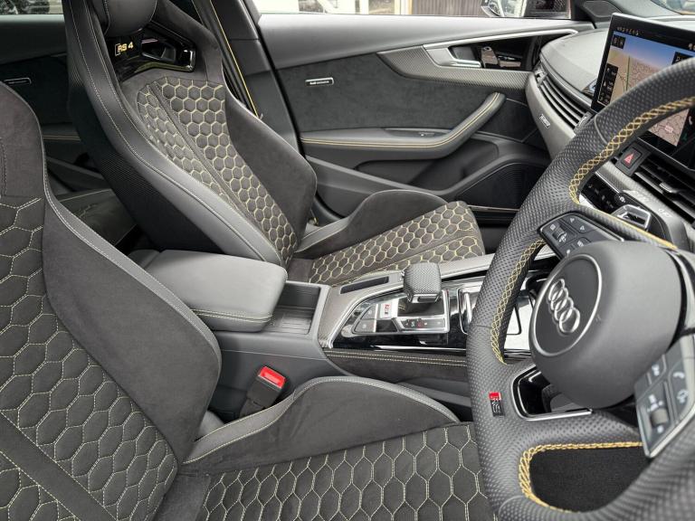 RS4 EDITION 25 YEARS, THIS CAR IS NUMBER 121 OUT OF ONLY 250 , SUPPLIED WITH EXTRA SET OF SEMI SLICK TYRES & ALLOYS FOR THE TRACK, CARBON RACE SEATS,RS SPORTS SUSPENSION PRO COIL OVER MANUALLY ADJUSTABLE SUSPENSION, 470 BHP, RS CERAMIC BRAKES, RS SPORTS EXHAUST PLUS, TOP SPEED RESTRICTION INCREASE TO 186MPH, SATELLITE NAVIGATION, REAR PARKING CAMERA, ADAPTIVE CRUISE CONTROL, AUDI VIRTUAL COCKPIT, LANE DEPARTURE WARNING, 3 ZONE CLIMATE CONTROL, MATRIX LED HEADLIGHTS WITH DYNAMIC REAR INDICATORS, POWER OPERATED TAILGATE, FRONT AND REAR PARKING SENSORS, BANG & OLUFSEN SOUND SYSTEM, DAB / FM RADIO, APPLE CARPLAY, ANDROID AUTO, BLUETOOTH CONNECTIVITY, VOICE CONTROL, USB PORTS, WIRELESS PHONE CHARGER, INFOTAINMENT TOUCHSCREEN, LEATHER MULTI FUNCTION STEERING WHEEL WITH GEAR SHIFT PADDLES, MYTHOS BLACK METALLIC, BLACK ALCANTARA HONEYCOMB YELLOW CONTRAST STITCHED AND RS EMBOSSED UPHOLSTERY, HEATED FRONT SEATS, CARBON INTERIOR TRIMS, REAR PRIVACY GLASS, 20'' DIAMOND CUT ALLOY WHEELS, ELECTRICALLY ADJUSTABLE HEATED AND FOLDING EXTERIOR MIRRORS WITH CARBON CAPS, AUTOMATIC LIGHTS, RAIN SENSING WIPERS, ELECTRONIC HANDBRAKE WITH HILL HOLD, AUTO DIMMING REAR VIEW MIRROR, KEYLESS ENTRY WITH PUSH BUTTON START, AUDI DRIVE SELECT, TIPTRONIC AUTOMATIC GEARBOX, QUATTRO 4-WHEEL DRIVE, 2 KEYS, EURO 6, ULEZ COMPLIANT All Audi Approved used cars are offered with a 12-month warranty and roadside assistance. This car comes with the balance of the manufacturers warranty until 1/9/2028. Crawley Audi are delighted to offer this Audi RS4 Edition 25 years in Black over Black Alcantara Leather and has completed just 6000 miles. We are proud to be part of the Harwoods group, a family run business established in 1931. With four Approved Audi retailers within our group, we have access to over 400 vehicles. If this isn't the right car for you, please contact us and we will find it. Our group stock has spec to include, Leather, Heated Steering Wheel, Rear Entertainment, 360-degree camera, Comfort & Sound Pack, Panoramic Sunroof, Technology Pack, Head up Display