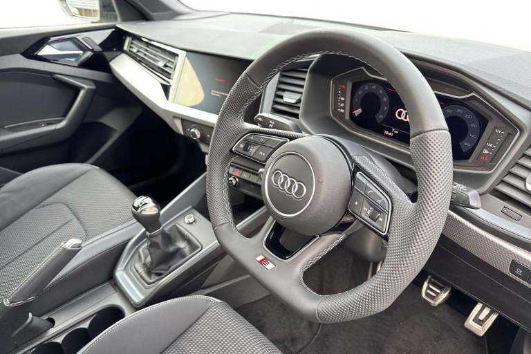 Vehicle price shown includes a deposit contribution of £750 when purchased on finance by 31/03/2026. Solutions Personal Contract Plan. 7.9% APR Representative. Audi Financial Services. Terms and Conditions apply. Discount includes the Audi Retail sales event offer. Check out this Brand-New Audi A1 Sportback Black Edition 30 TFSI in Dew Silver with its optional 18"" 5-Y-spoke alloy wheels which look superb out on the roads. The LED headlights with LED rear lights create that strong visibility in all weather conditions. This A1 has some brilliant optional extras, such as the Technology pack, which does include the Sonos 3D premium sound system, for that excellent sound experience. It also includes the rear-view camera which creates that additional vision and assists greatly whilst maneuvering those tighter spaces. The heated front seats are perfect for those cooler mornings. Some other fantastic features include the Bluetooth interface which provides seamless connectivity on all journeys. The Ambient lighting pack enhances the cabins ambience and improves visibility of controls at night. The multimedia interface allows the driver and front passenger to access a range of different media, such as Apple Carplay and Android Auto, giving you access to apps like Spotify, Google Maps, Apple Music and other apps also. The Audi drive select feature lets you choose your prefered drive mode on any journey, for a more personalised driving experience. The driver assi...