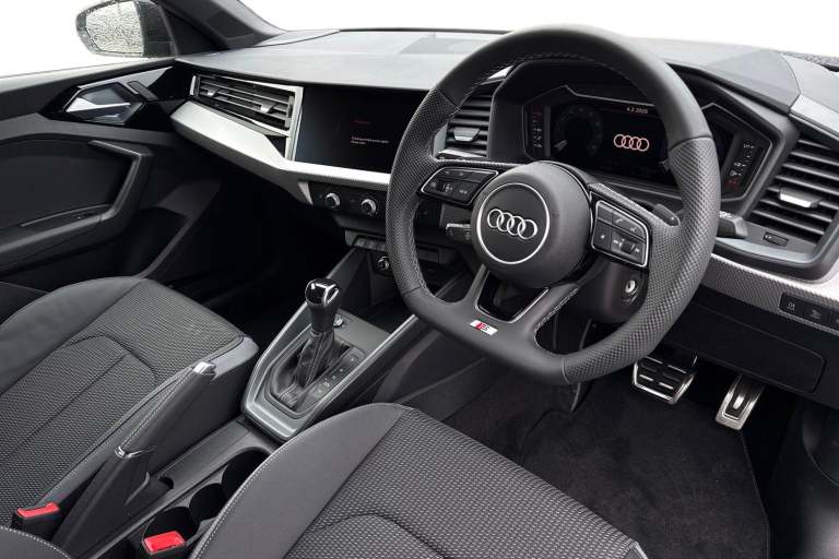 Experience the perfect blend of style, performance, and cutting-edge technology with this Audi A1 Black Edition Sportback in stunning Navarra Blue. Powered by a nimble 1.0-litre TFSI engine, it delivers a smooth, responsive drive with impressive efficiency, paired with the effortless S Tronic automatic gearbox and start-stop system for seamless city and motorway driving. Sitting proudly on 18-inch alloy wheels with sport suspension, this A1 not only turns heads but handles corners with poise and precision. The striking LED headlights with dynamic rear indicators, coupled with a black styling pack and contrast Mythos Black roof, give it a commanding presence on the road. Step inside to discover a refined interior crafted for comfort and convenience. Black cloth headlining, aluminium-trimmed controls, and ambient lighting create a premium feel, while three rear seats with headrests and a 335L boot provide practical versatility. The leather multi-function flat-bottomed steering wheel with shift paddles and stainless steel pedals add a sporty touch. Packed with advanced tech, the Audi A1 features a 10.25-inch digital instrument cluster, MMI Radio Plus with 10.1-inch colour display and touch control, Audi Smartphone Interface, Bluetooth, DAB, and Audi Connect Remote. Safety is paramount with Audi Pre-Sense Front, lane departure warning, rear parking sensors, and multiple airbags. Comfort and convenience include cruise control with speed limiter, heated mirrors, privacy glass,...