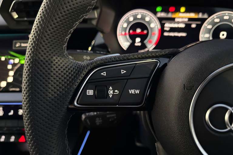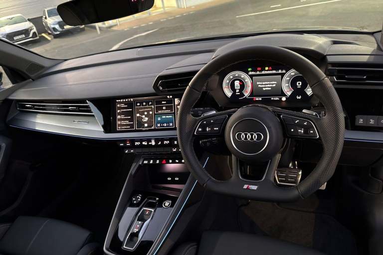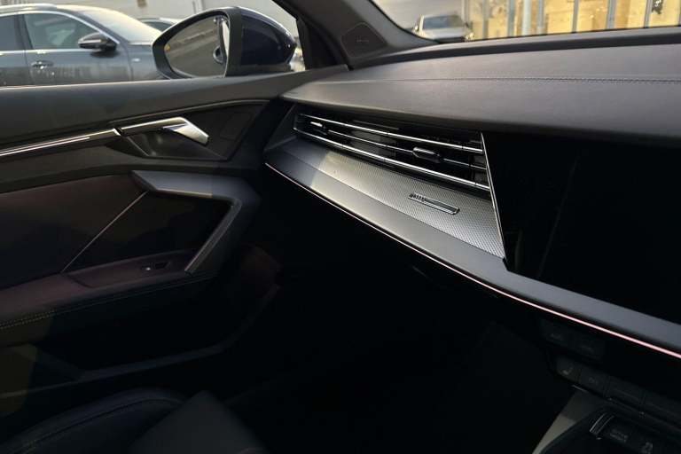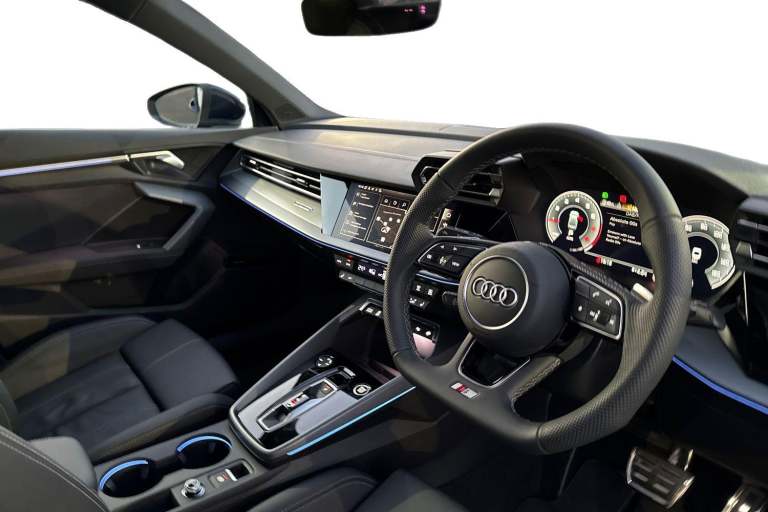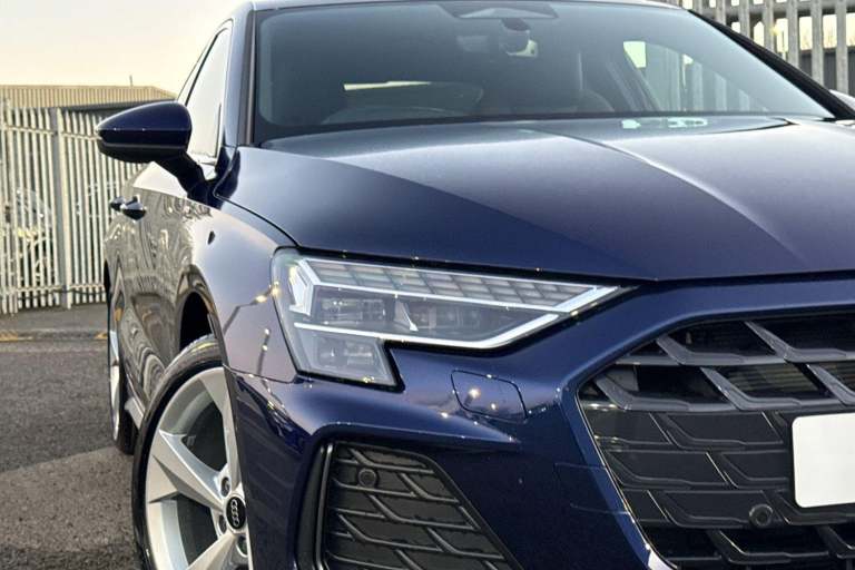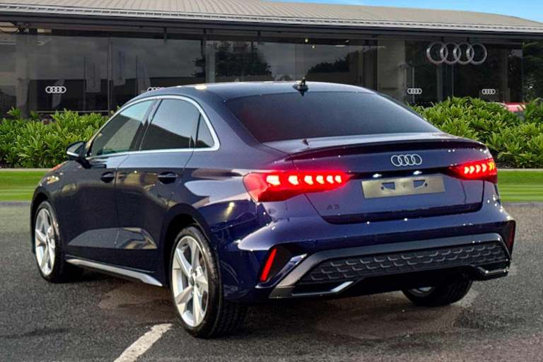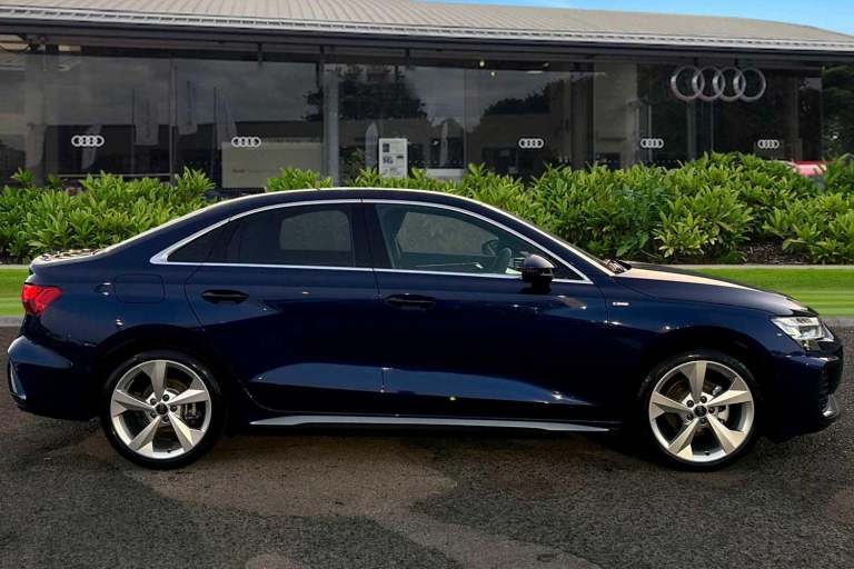 Carlisle Audi is pleased to introduce thisAudi A3 Saloon S line, finished in the modern Navarra Blue. This striking A3 sits on a set of 18"" alloy wheels and Privacy Glass fitted to the rear windows, allowing you to stand out from the crowd. Designed to make parking and maneuvering a doddle this Audi comes with a rear view camera with front and rear parking sensors as well as Park Assist. Designed to perfectly illuminate the road no matter the driving conditions this vehicle comes with LED headlights. This saloon comes with a 1.5 litre TFSI petrol engine that allows you to push an impressive 150PS. Vehicle price shown includes a deposit contribution of £2500 when purchased on finance by 31/03/2026. Solutions Personal Contract Plan. 7.9% APR Representative. Audi Financial Services. Terms and Conditions apply. Inside, youll find a multifunction steering wheel which allows you to easily control your music, cruise control and Audi Virtual Cockpit. Here you can see information about your car, phone connectivity and navigation system. This vehicle also comes with a wireless charger that allows you to safely store your phone as your travel distraction free. The dash is equipped with a MMI Touchscreen, allowing you to easily control your DAB Radio, navigation system and Audi Smartphone Interface, allowing you to easily connect your phone to the vehicle using either Android Auto or Apple Carplay.