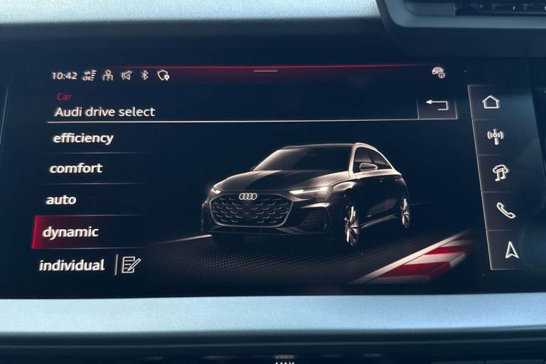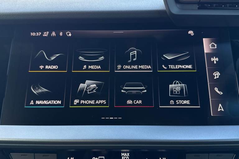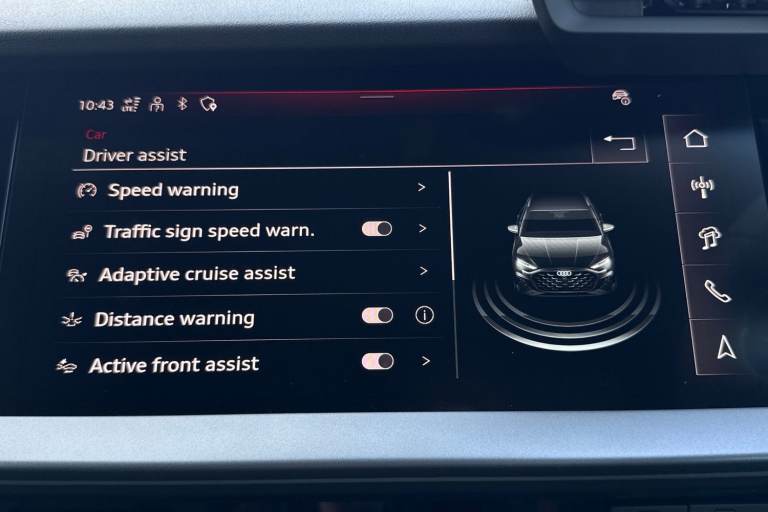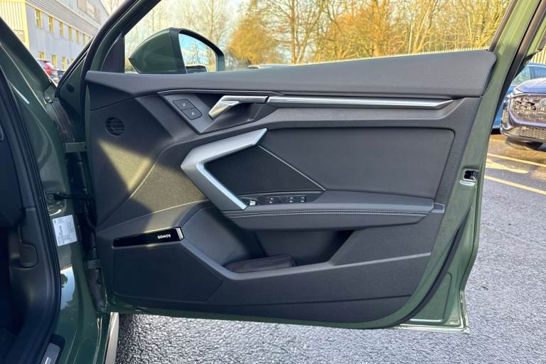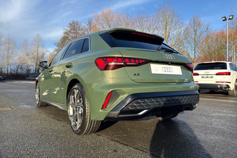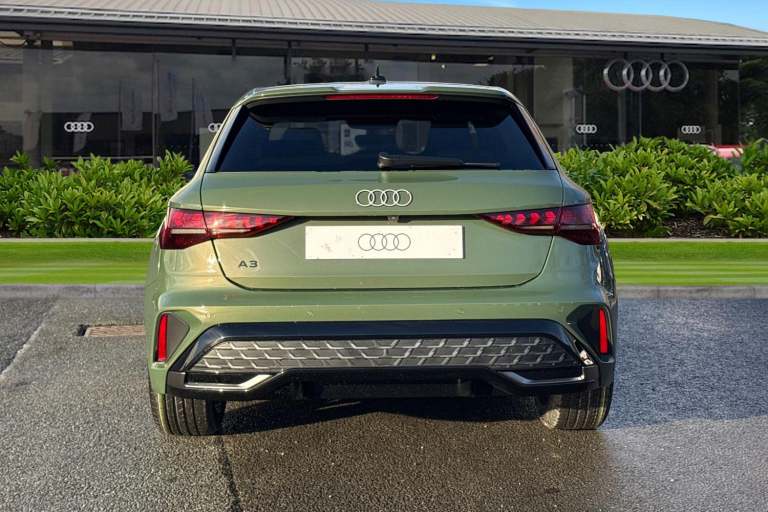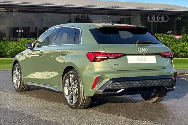 Finished in distinctive District Green, this Audi A3 1.5 TFSI S line Sportback combines sporty design, refined performance, and advanced technology. Powered by the smooth and efficient 1.5 TFSI petrol engine, it delivers an engaging yet economical drive, enhanced by Audi Drive Select and sport suspension for a more dynamic feel. The S line exterior styling gives the car a confident road presence, complemented by 18-inch alloy wheels in a 5-twin-spoke design finished in graphite grey with a gloss-turned effect. LED headlights with LED rear lights and dynamic rear indicators add a sharp, modern look. Inside, the cabin is sporty and sophisticated, featuring front sport seats with 4-way lumbar support and heating, along with 3-zone deluxe automatic climate control for enhanced comfort. The Audi Virtual Cockpit Plus delivers a fully digital and customisable driver display, reinforcing the cars premium, driver-focused interior. Technology and connectivity are comprehensive, with MMI Navigation Plus displayed on a high-resolution 10.1-inch touchscreen, Audi Connect Navigation and Infotainment Services Plus, Audi Smartphone Interface, Audi Phone Box Light with wireless charging, and the Audi Sound System ensuring a seamless driving experience. Driver assistance and safety systems include Adaptive Cruise Control, Audi Pre-Sense Front with pedestrian and cyclist recognition, hill hold assist, and advanced parking aids such as Park Assist with Parking System Plus and a rear-view ca...