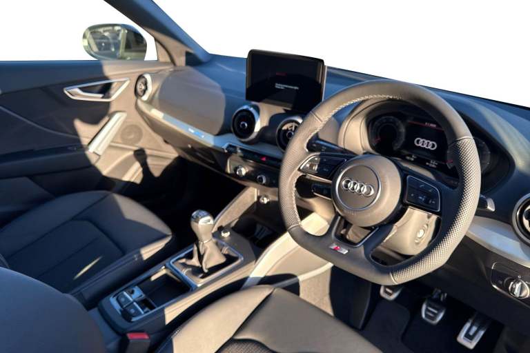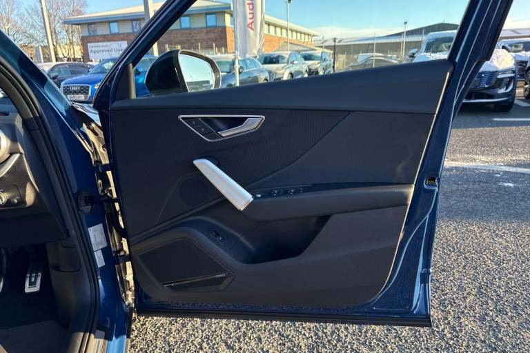 Carlisle Audi is pleased to introduce this Audi Q2 Black Edition, finished in the eye-catching Ascari Blue. This lovely vehicle comes with the economical 1 litre TFSI petrol engine and 6-speed manual gearbox which allows you to push an impressive 116PS. Sitting on a set of 19"" alloy wheels this Q2 comes with a range of exterior features that helps it stand out from the crowd, these include privacy glass on the rear windows and the black styling package that includes a black grille, badging and details. Vehicle price shown includes a deposit contribution of £4000 when purchased on finance by 31/03/2026. Solutions Personal Contract Plan. 7.9% APR Representative. Audi Financial Services. Terms and Conditions apply. Youll find this Q2 equipped with the Technology Pack, this is designed to make driving a pleasure. This pack includes Audi Parking System Plus as well as Rear-view camera system, allowing you to easily park and manoeuvre your vehicle no matter how tight the space. This vehicle also comes with the SONOS premium sound system, this provides perfect sound quality for all your favourite music. The Heated front seats allow you to stay cozy whilst the weather is chilly and the additional Audi Phone Box means you can safely charge and store your phone whilst on the move. Inside, youll find a flat bottom multifunction steering wheel that allows you to easily control your music, cruise control and Audi Virtual Cockpit. Here you can see information about your car, phon...
