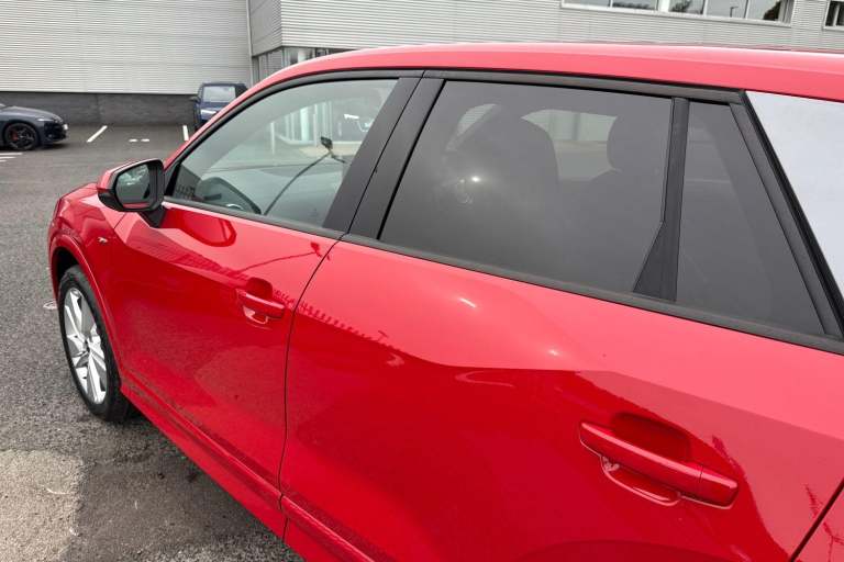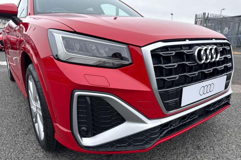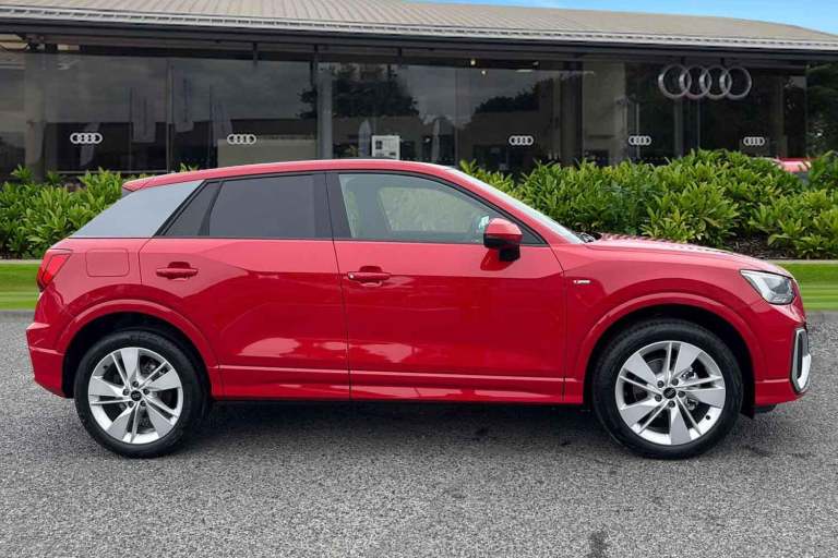 Here at Carlisle Audi, we are pleased to offer this incredible Audi Q2 S line in Progressive Red. This Brand New Q2 model comes with a 1.0L petrol engine producing 114 horsepower, and lovely 18 Inch Alloy Wheels in a 5-Segment-Spoke Design to help you stand out on the move. At the front of the car you can benefit from sharp and crystal clear LED Headlights which will keep you safe no matter the weather conditions. Towards the back, the Q2 comes with eye-catching and reliable LED Rear Lights, giving visibility a stylish look. Opening the boot is also made easy with the addition of the Power Operated Tailgate which opens and closes the boot for you with just one press of a button. Sitting in the drivers seat, you will also find the Three Spoke Leather Multi Function Steering Wheel to control the Audi Virtual Cockpit without taking your hands off the wheel. Up on the cockpit display, you can view your local date and time, Radio, Telephone, Satellite Navigation and Car Performance. Up on the infotainment screen you will find all the settings needed like Radio, Media, Telephone, Satellite Navigation, Android Auto and Apple Carplay, Drivers Select, and much more. Vehicle price shown includes a deposit contribution of £4000 when purchased on finance by 31/03/2026. Solutions Personal Contract Plan. 7.9% APR Representative. Audi Financial Services. Terms and Conditions apply. Other key features on this brilliant New Q2 include: 6 Passive Loudspeakers, Audi Connect Remote and Con...