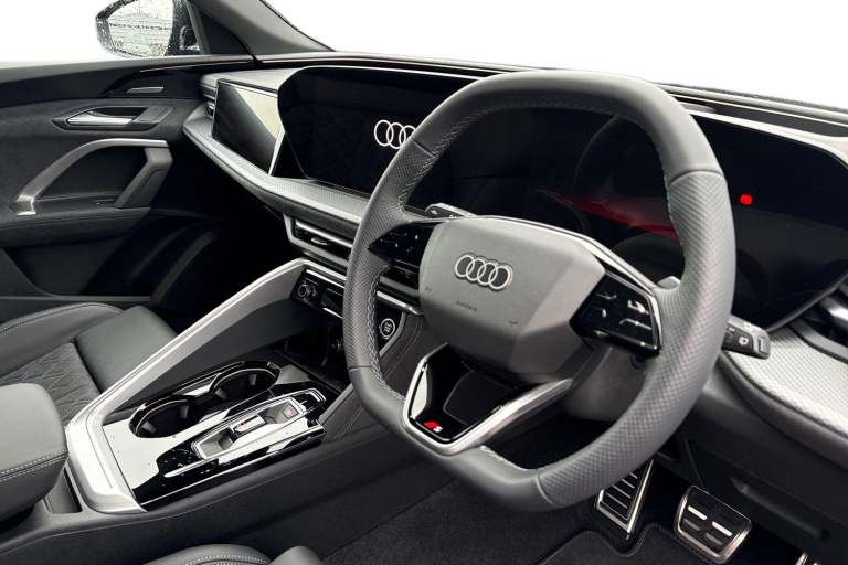 Price shown includes a deposit contribution of £1000 when purchased on finance by 31/03/26. Solutions Personal Contract Plan. 7.9% APR Representative. Audi Financial Services. Terms and Conditions apply Discount includes the Audi Retail Sales Event Offer. Take a look at this Brand-New Audi Q5 Sportback Edition 1 TFSI Quattro in Mythos Black with its 21"" 5-twin spoke Audi sport alloy wheels which look superb out on the roads. The Matrix LED headlights with LED rear lights pro, create that strong visibility in all weather conditions. The deluxe 3-zone climate control can be adjusted to your prefered climate on all journeys. This Q5 has some brilliant optional extras, such as the Sound and Vision pack which does include the Bang and Olufsen 3D premium sound system, for that excellent sound experience. It also includes the Head-up display which further enhances safety and convenience by allowing the driver to keep their eyes on the roads. Some other fantastic features include the Top-view camera which creates that additional vision and assists in all maneuvering situations. The phone compartment with wireless charging, makes fully charging or just topping up your phones battery on any journey, a breeze. Another great feature, is the heated front seats which are perfect for those cooler mornings. The multimedia interface allows you to access different media, such as Apple Carplay and Android Auto, giving you access to apps like Spotify, Google Maps, Apple Music and other...