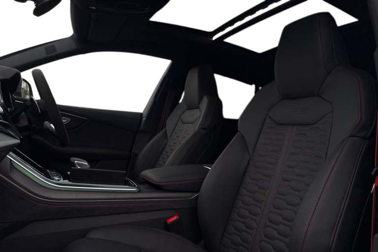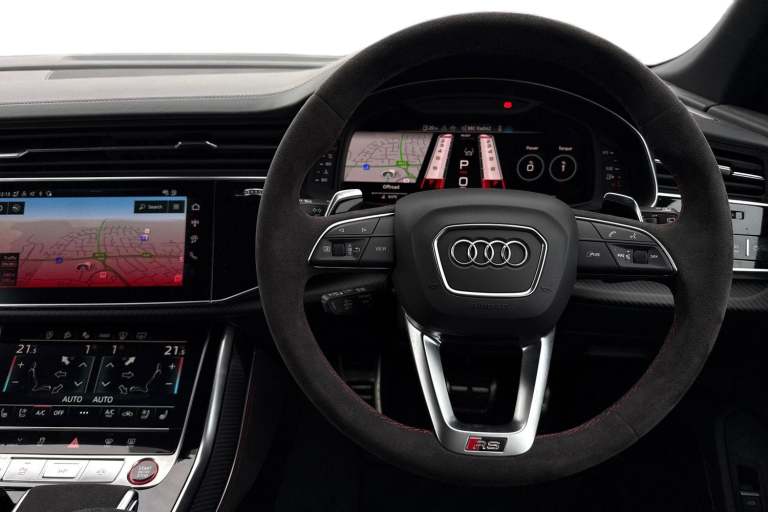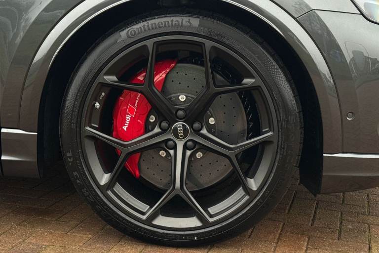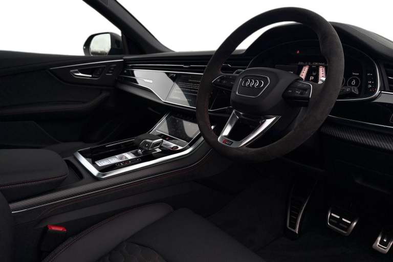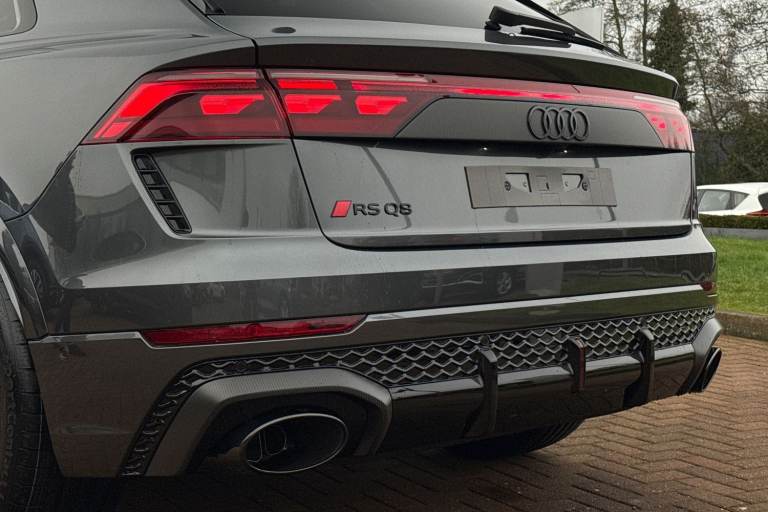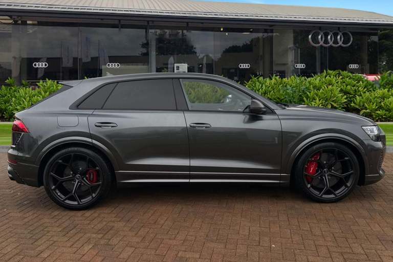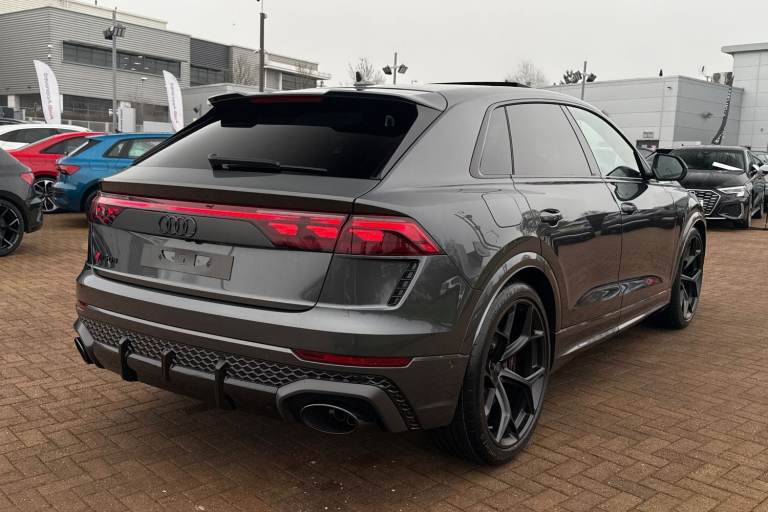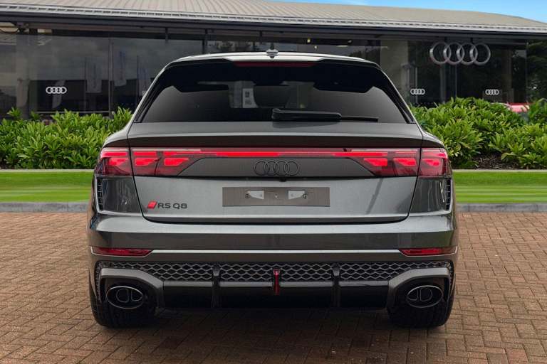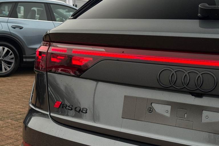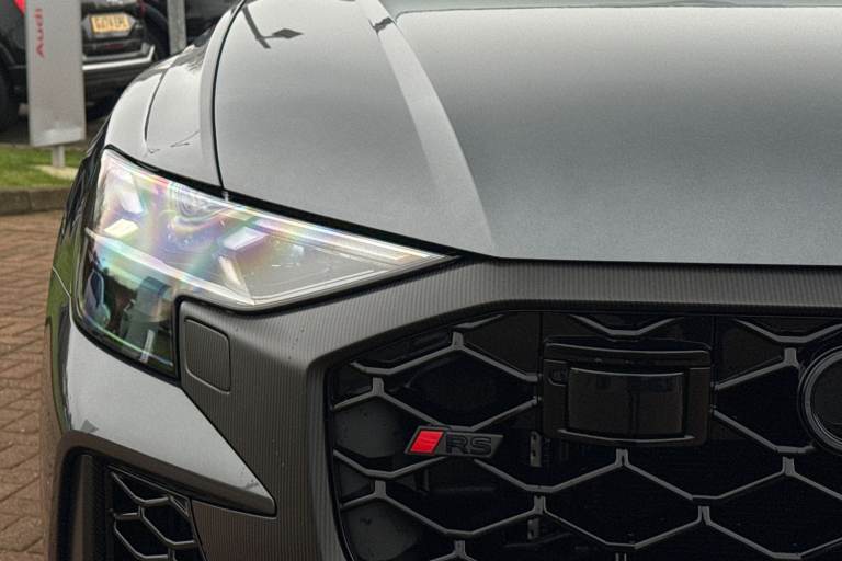Experience Audis pinnacle of performance and presence with this brand-new Audi RS Q8 Performance Carbon Vorsprung, finished in the stunning Daytona Grey Metallic. A masterful blend of supercar power, SUV practicality, and Vorsprung luxury, this flagship model delivers an uncompromising driving experience matched only by its breathtaking design. Draped in Mythos Black Metallic, the RS Q8 exudes stealth and sophistication. The Carbon Vorsprung package enhances its athletic stance with exclusive carbon-fibre accents, including the front splitter, rear diffuser, mirror housings, and side blades. Striking HD Matrix LED headlights with Audi Laser Light and colossal 23"" alloy wheels further emphasise its powerful road presence. Under the bonnet lies Audis most potent SUV powertrain: a 4.0-litre twin-turbocharged V8 delivering explosive acceleration, sharpened dynamics, and the unmistakable RS soundtrack. Quattro all-wheel drive, adaptive air suspension, and RS-specific drive modes ensure confidence, precision, and agility in every corner. The Vorsprung specification elevates luxury to its highest level. Inside, youll find premium Valcona leather RS seats, a panoramic glass roof, ambient lighting, carbon-fibre inlays, and Audis latest MMI Touch Response system with virtual cockpit and head-up display. Heated and ventilated seating, advanced driver assistance systems, and a Bang & Olufsen 3D premium sound system complete the experience. Vehicle price shown includes a deposit c...