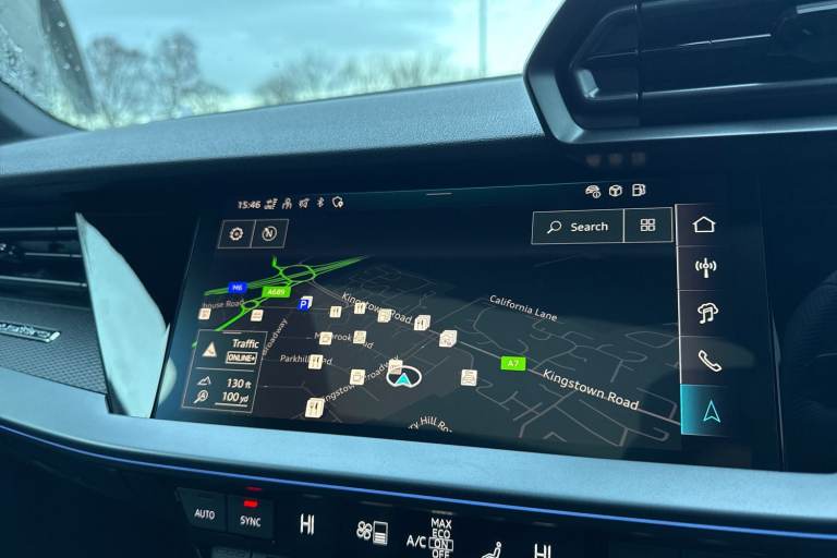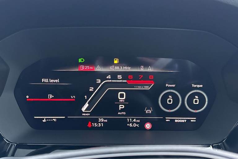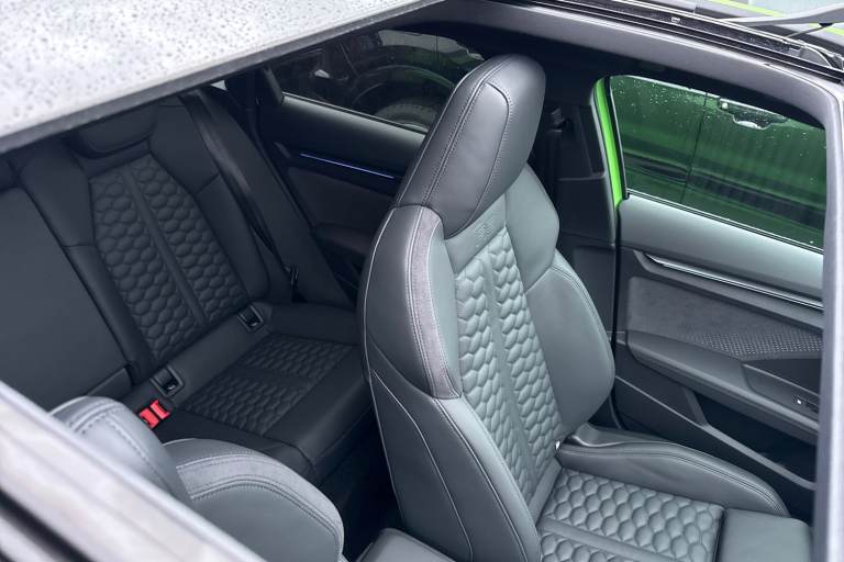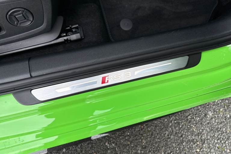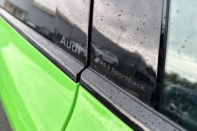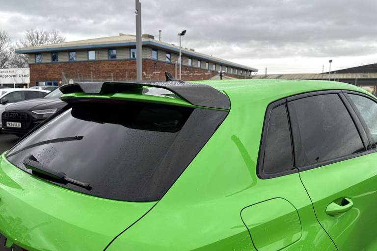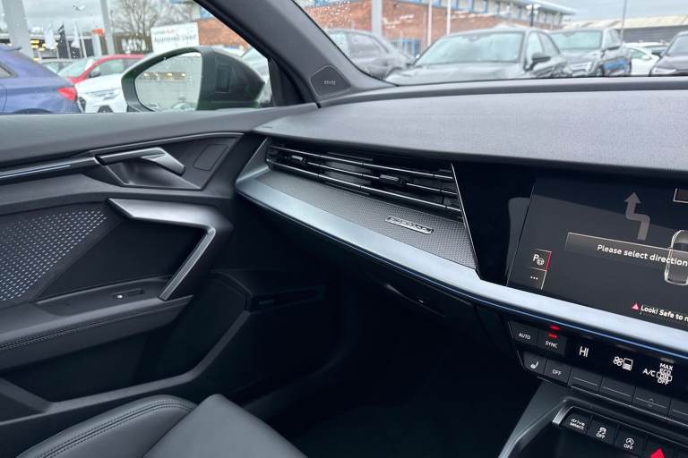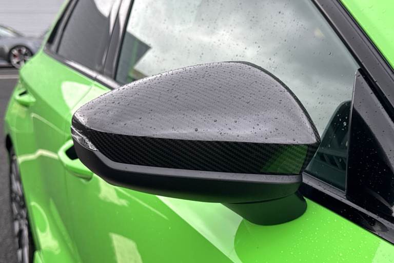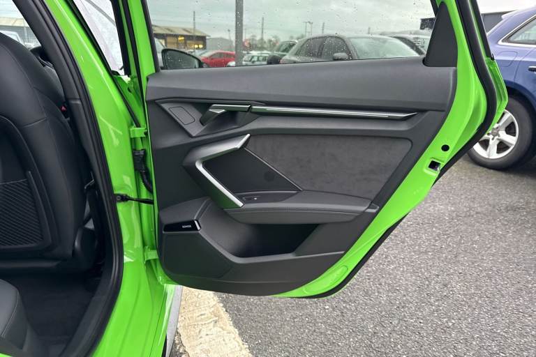 The Audi RS 3 Sportback is the perfect vehicle for thrill seekers, and this Carbon Black is no exception. Finished in Mythos Black, this Audi RS3 is built with the 2.5 litre TFSI petrol engine and S Tronic automatic gearbox that provides 400PS. Able to go from 0-62 in just 3.8 seconds this vehicle is built for performance, with a lap around the Nurburgring ring taking a mere 7:33.123 minutes. Vehicle price shown includes a deposit contribution of £4000 when purchased on finance by 31/03/2026. Solutions Personal Contract Plan. 7.9% APR Representative. Audi Financial Services. Terms and Conditions apply. This RS3 sits on a set of 19"" alloy wheels, with upgraded red brake calipers, designed to stand out from the crowd no matter the driving conditions. The exterior comes with carbon features, including wingmirrors, details and a carbon roof spoiler. To the front of the vehicle is a set of Darkened Matrix LED headlights that add to the aggressive look of the exterior, perfectly illuminating the road as you drive. The RS sports exhaust is fitted to the rear, allowing you to look and sound good. Inside, youll find a sporty flat top and bottom steering wheel that allows you to easily control your music, cruise control and Audi Virtual Cockpit. This steering wheel also comes with the RS and Checkered Flag buttons that allow you to easily control performance and exhaust settings. The dash is equipped with an MMI Touchscreen where you can easily adjust settings and connect your p...