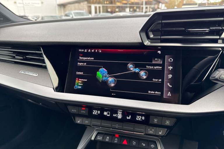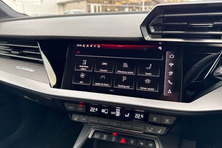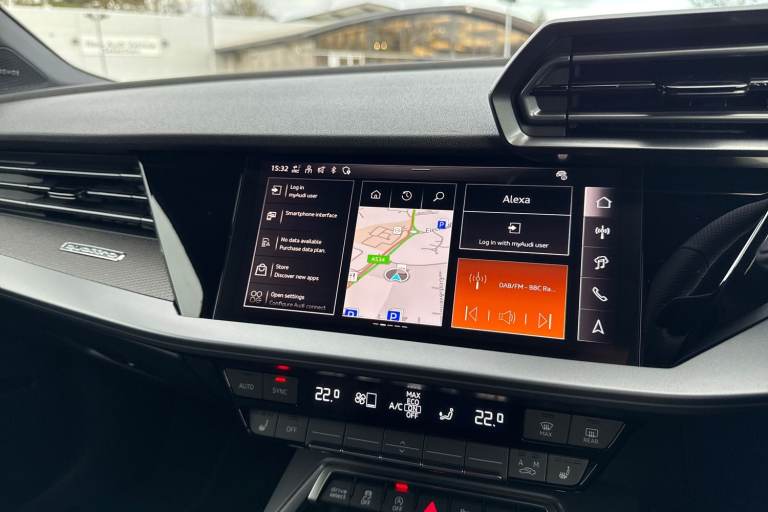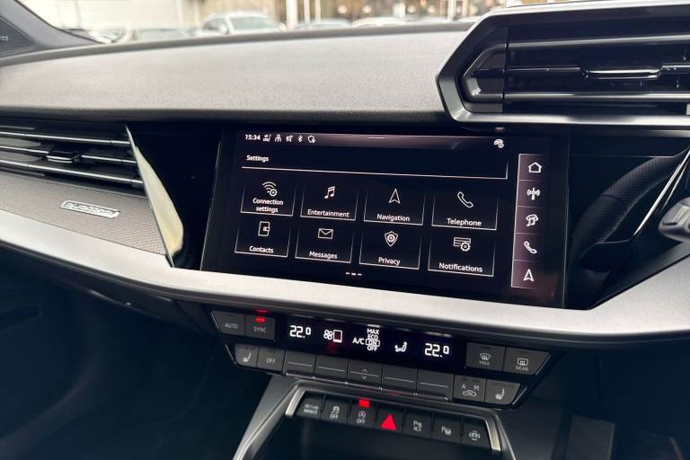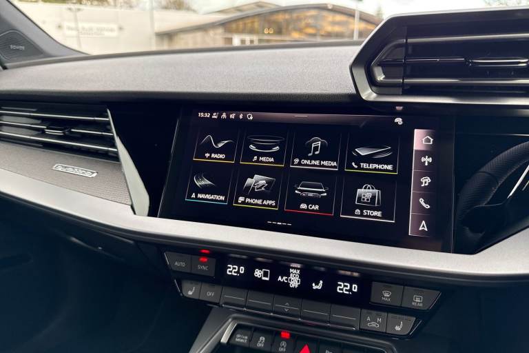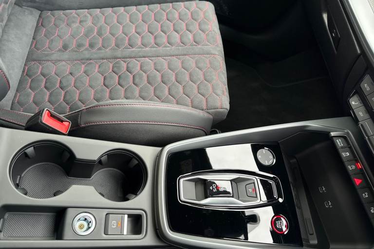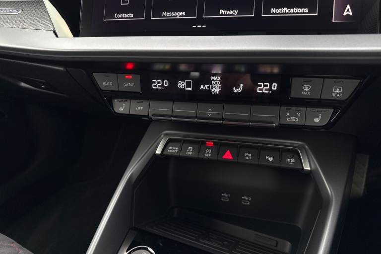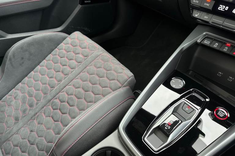 This car has Audi Exclusive Paint in Suzuka Grey. Immediate delivery. Have a look at this Brand-New Audi RS3 Saloon Carbon Vorsprung in the stunning Audi exclusive paint finish in Suzuka Grey, with its 19"" 10-cross spoke alloy wheels which look superb out on the roads. The Matrix LED headlights with LED rear combination lights create that strong visibility in all weather conditions. This RS3 comes equipped with some fantastic optional extras, such as the red brake calipers, to really stand out on the roads. Other brilliant features include the Technology pack pro, which does include the panoramic glass sunroof, which floods the cabin with light and is perfect for those sunny days. The heated front seats are perfect for those cooler mornings. The Sonos premium sound system creates that excellent sound experience for everyone to enjoy. Another brilliant feature, is the 360 degree camera which maximises vision and assists greatly in all maneuvering situations. The Audi phone box with wireless charging, makes fully charging or just topping up your phones battery on any journey, a breeze. The multimedia interface allows the driver and front passenger to access a range of different media, such as Apple Carplay and Android Auto, allowing you to use apps like Spotify, Google Maps, Apple Music and other apps also. The Audi drive select feature lets you choose your prefered drive mode on any journey, for a ore personalised driv...