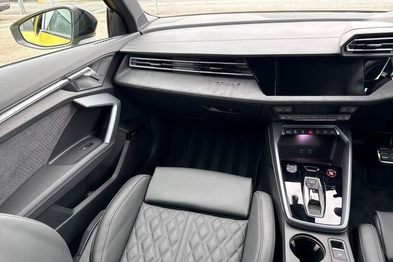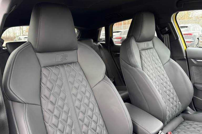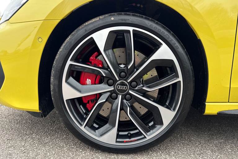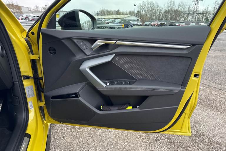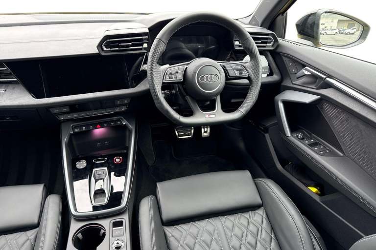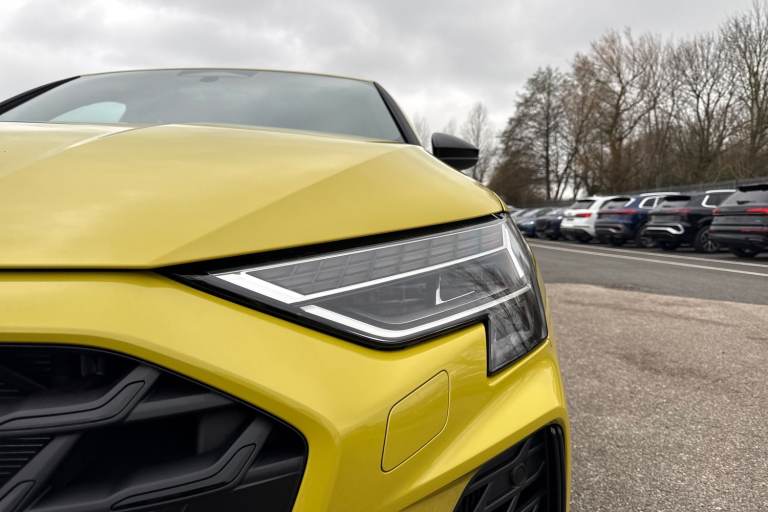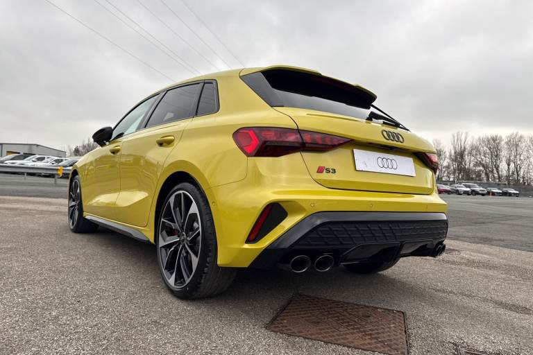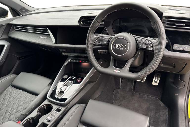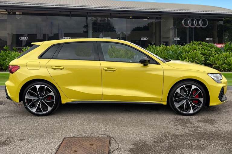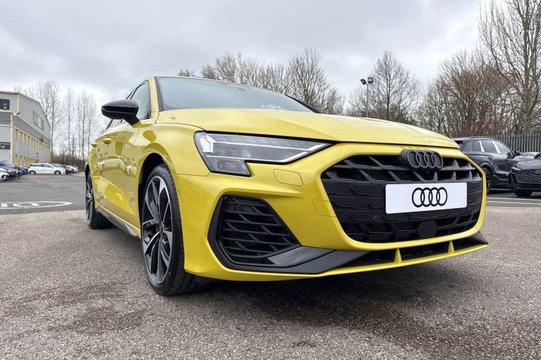 Enhance your performance with the Audi S3 2.0 TFSI Black Edition Sportback S Tronic quattro, finished in the rare yet striking Python Yellow. Its athletic presence is amplified by 19-inch 5-Twin Spoke Edge alloy wheels in Anthracite Black with gloss-turned finish, S3 design body styling, and the Black Styling Pack, including brake calipers painted in black with distinctive S lettering. The S Sport suspension ensures agile, confident handling, while Audi Drive Select lets you tailor the driving experience to your mood and the road ahead. Inside, the cabin is a perfect mix of sportiness and comfort. Front sports seats and 3-zone deluxe automatic air conditioning provide a luxurious environment, while the panoramic sunroof fills the interior with light. Audi Virtual Cockpit Plus and MMI Navigation Plus with a high-resolution 10.1-inch touchscreen keep all driving information and navigation at your fingertips, and the Audi Phone Box Light offers wireless charging for seamless connectivity. DAB digital radio and the SONOS sound system create an immersive audio experience for every journey. Safety and convenience are enhanced with Audi Pre-Sense Front with pedestrian and cyclist recognition, lane departure warning, light and rain sensors, electrically adjustable, heated, folding exterior mirrors, and a manual boot compartment lid. LED headlights with LED rear lights and dynamic indicators ensure visibility and style in every condition. Vehicle price shown includes a deposit cont...