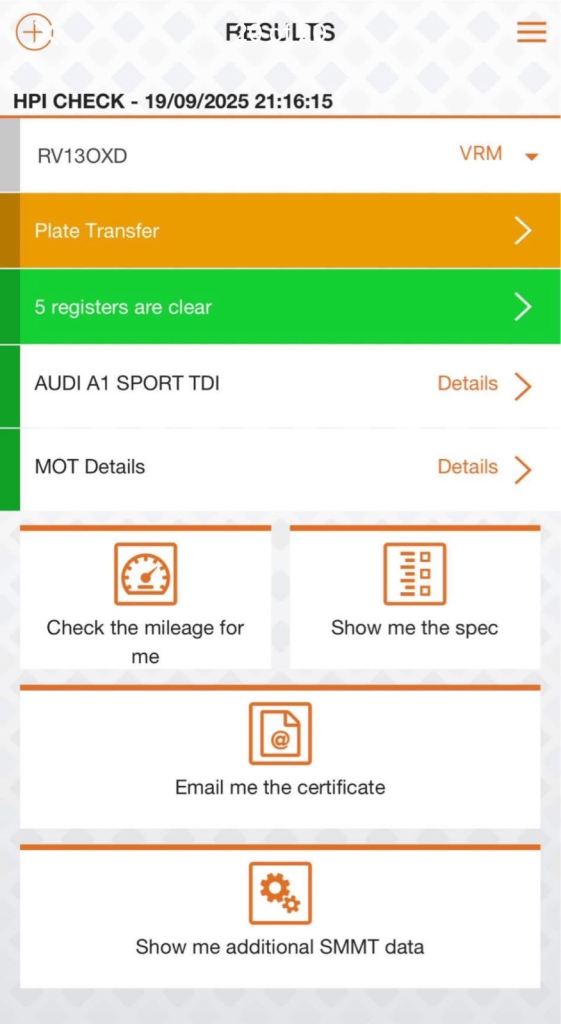 Our vehicle history check is provided for guidance only. Please check all the details with the seller before purchasing