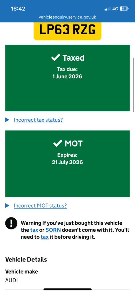 This vehicle has not been reported stolen, scrapped, exported or flagged as unroadworthy.