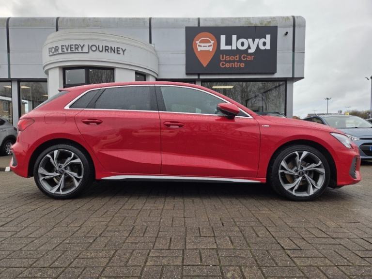 Conveniently located less than a mile from junction 44 off the M6 Lloyd Used Car Centre Carlisle are delighted to offer this AUDI A3 30 TFSI S Line 5dr first registered on 07-04-2023 and comes complete with an up-to-date Service, MOT and our market leading 12-month nationwide warranty and breakdown ensuring complete peace of mind. Finished in gleaming metallic red paintwork complimented with 18 inch diamond cut alloy wheels and privacy glass. This comes with a range of great features the interior is adorned with a black leather upholstery, the touchscreen infotainment system with integrated phone connectivity providing hands-free operation of compatible devices and integrated satellite navigation. This compact Audi A3 comes with parking sensors allowing you to park with precision in narrow spaces, and drive assist featuring adaptive cruise control. Lloyd Used Car Centre are extremely proud to offer what we believe are the very best quality and selection of used vehicles in the local area, our vehicles are carefully selected by our sales manager Richard who has over 30 experience in the motor industry giving him the insight to select the very best vehicles from our colleagues within the multi award winning family-owned Lloyd Motor Group, one of the UKs leading independent vehicle retailers.