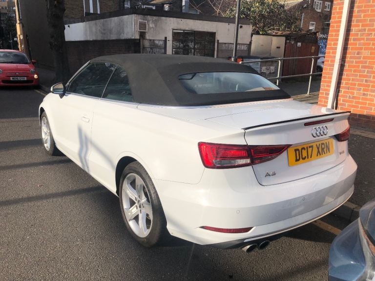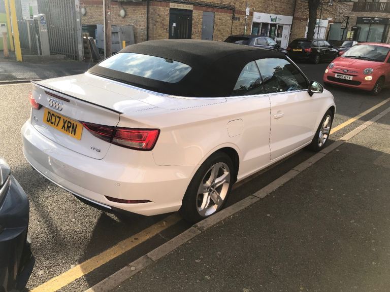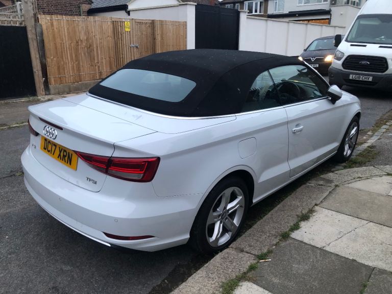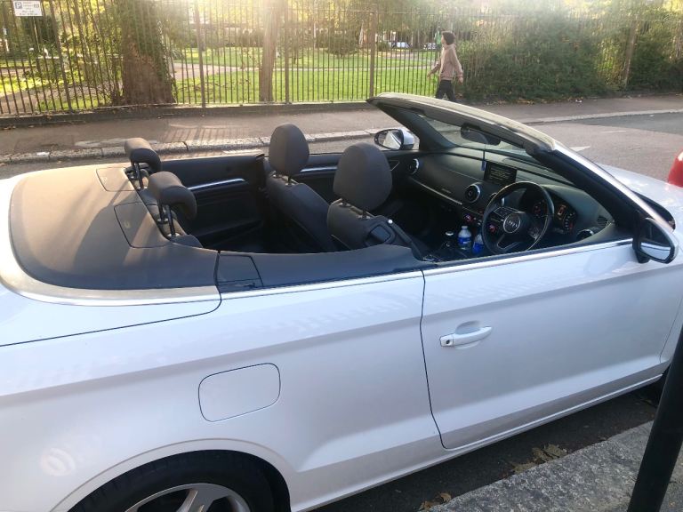 2017 AUDI A3 SPORT CABRIOLET (CONVERTIBLE) 2.0 PETROL ENGINE NOT VERY COMMON. VERY CLEAN IN AND OUT, LIKE NEW IN BRILLIANT IMMACULATE WHITE, ENGINE AND GEARBOX EXCELLENT, TYRE AND ALLOY WHEELS EXCELLENT, ONE OWNER FROM NEW, VERY LOW GENUINE MILEAGE 46000 CONFIRMED BY (VOSA), MOT DUE 30/04/2026 WITH NO ADVISORIES, TAXED DUE 01/09/2026, INSURED, SERVICED, LOGBOOK, SERVICE BOOK, OWNERS MANUAL BOOK ALL AVAILABLE, 6 SPEED GEARBOX, AUDI SELECT DRIVE, AIR-CONDITION, DUAL CLIMATE CONTROL, SPORT HEATED SEAT, ELECTRIC FOLDING MIRRORS, BLUETOOTH, DAB RADIO/ CD/AUX/AV/AUDI CONNECT/USB/APPLE CAR PLAY, 7” ANDROID SCREEN, AUTO SENSORS HEADLIGHT, PARKING SENSORS, RAIN SENSORS WIPERS, CRUISE CONTROL WITH SPEED LIMITER, NAVIGATION, DRIVE LIKE NEW SUPERB, NO RATTLES OR SQUEAKS