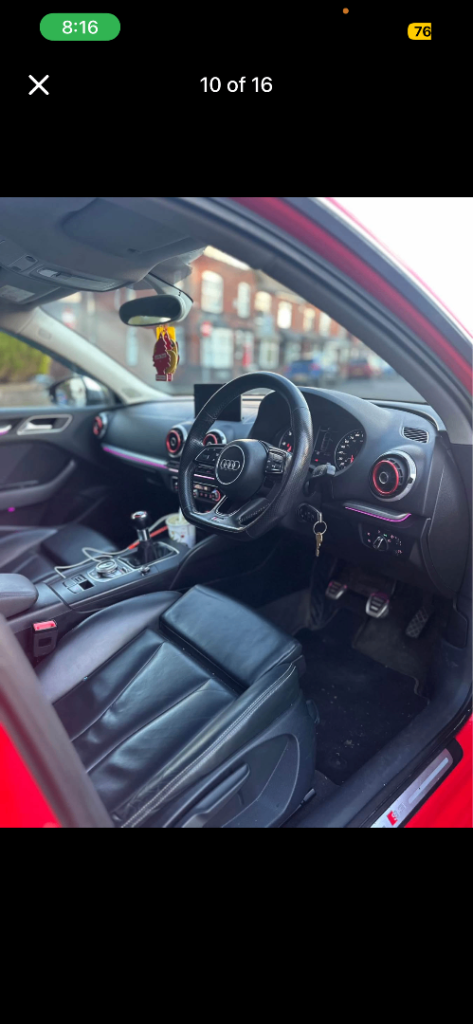 This Car is currently sat on 145k miles, don’t let the miles fool you runs and drives brilliant with no issues whatsoever have the S3 style without the S3 prices, Parking Assist, Full Ambient lightning kit all around, 19” Alloys, Full S3 rep, S3 Seats, S3 Bodykit, S3 Steering Wheel and so on, Car is lowered, Smoked rear lights, Reverse Camera, Google Earth maps, Bigger infotainment screen, Stage 1 remap with Popcorn Limiter sounds lovely, Facelift Tail lights and Headlights, Dual Climate Control, Multifunctional steering wheel, Parking Sensors all around, Electric Heated Mirrors and so on. V5c applied for awaiting to be sent out.