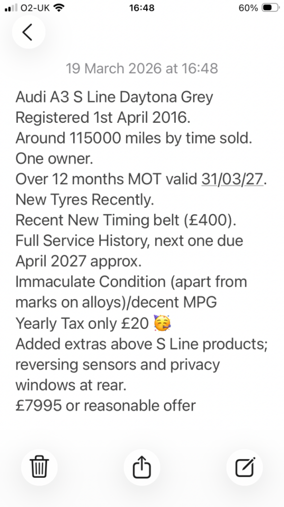 I’m selling my pride and joy (genuine reason) after owning since new and really looking after it. It seriously is a decent car, lovely colour and drives perfectly.
