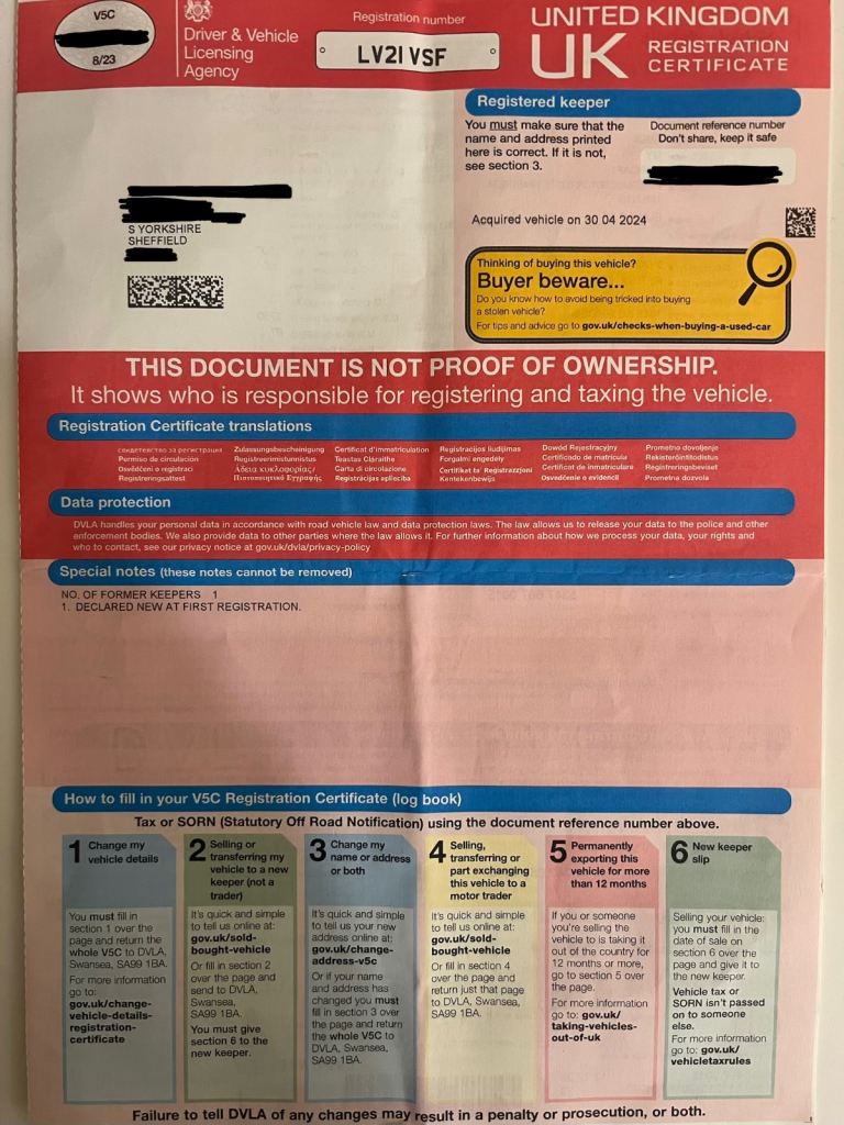 This vehicle has not been reported stolen, scrapped, exported or flagged as unroadworthy.