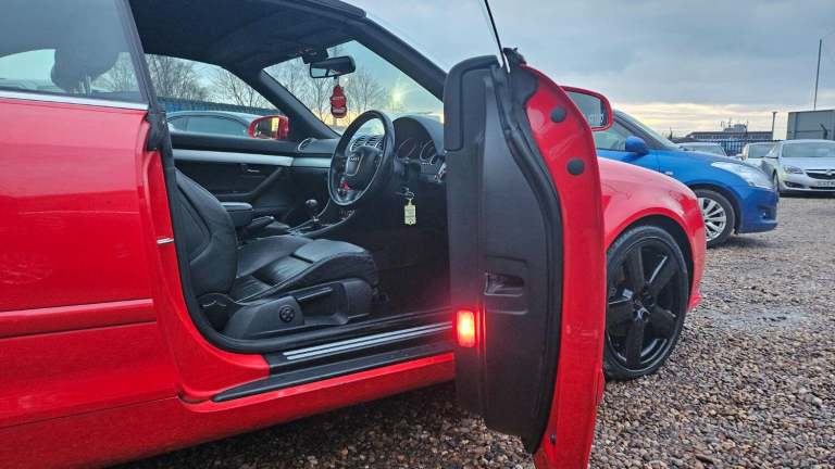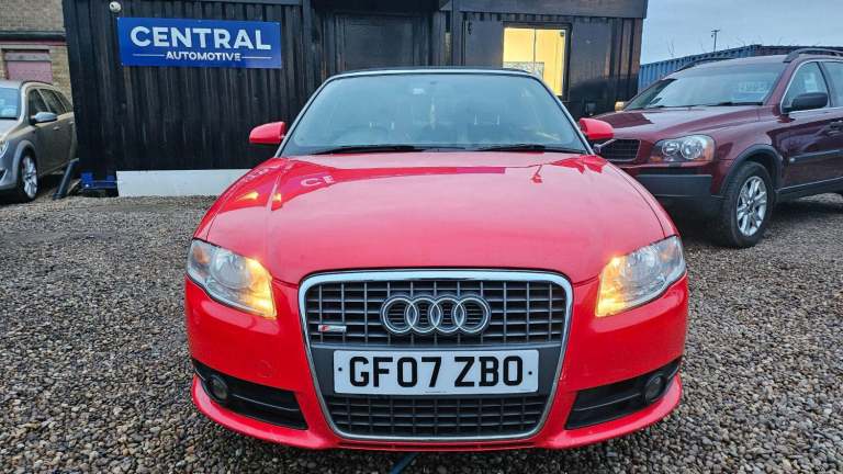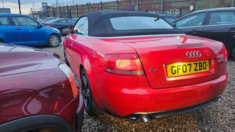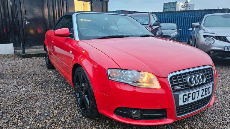 Audi A4 2.0 TDI S line finished in Red (Manual), 170157 miles Red Audi Convertible on Black Alloys Multifunction Steering Wheel 6 Speed Manual Audi Connect CD, Radio, ECON Leather Heated Seats Black Alloy Wheels Only £1,995