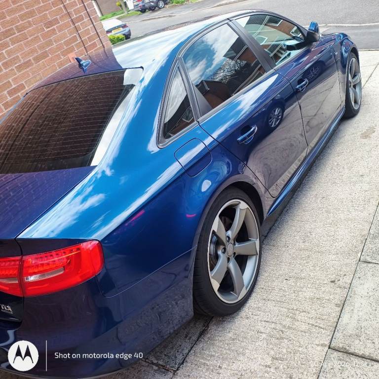 Here we have is my Audi A4 2.0 TDI Black Edition Quattro 177bhp finished in metallic Scuba Blue which looks stunning. Full service History Audi & independent, well kept car with Clean MOT History, HPI clear and Report is in the History under my ownership, Cambelt+Waterpump replaced on 109k, 19" Rotors hardly any kerbs with good quality tyres, Machine Polished and No smokers or pets.