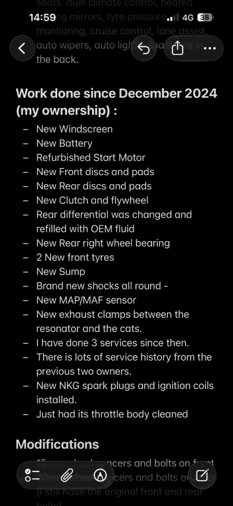 More Info is in the last 4 pictures. There is service history from previous owners and I have personally documented all work done by me (last slide).