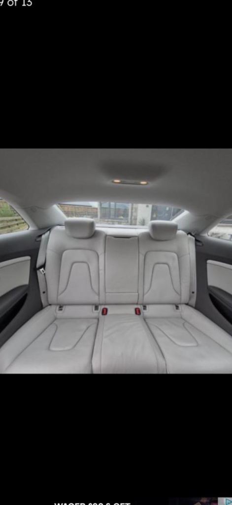 Audi a5 2.7L Diesel. Near full service history, only 3 owners. Great going car. Mechanically mint. Few bits on body could do with a touch up but not bad at all for age. Interior absolutely mint almost untouched other that slight wear on drivers seat unnoticeable. Heated electric seats in front. Most miles done on motorway by last owner who was a very sensible driver, and now driven only by my girlfriend so cars always been well looked after as can seen by viewing. Any more information just ask. Just had new pads all round and plenty more