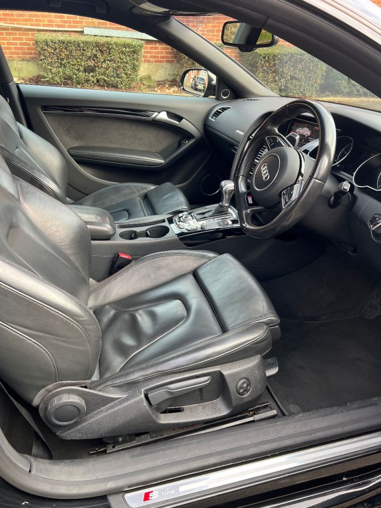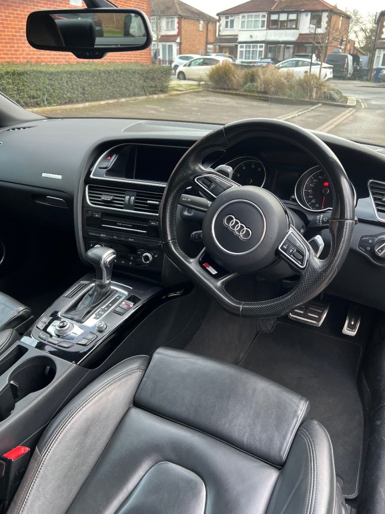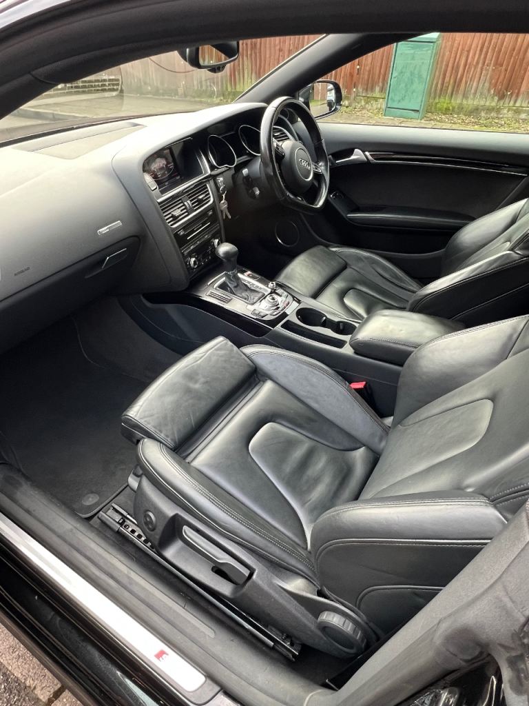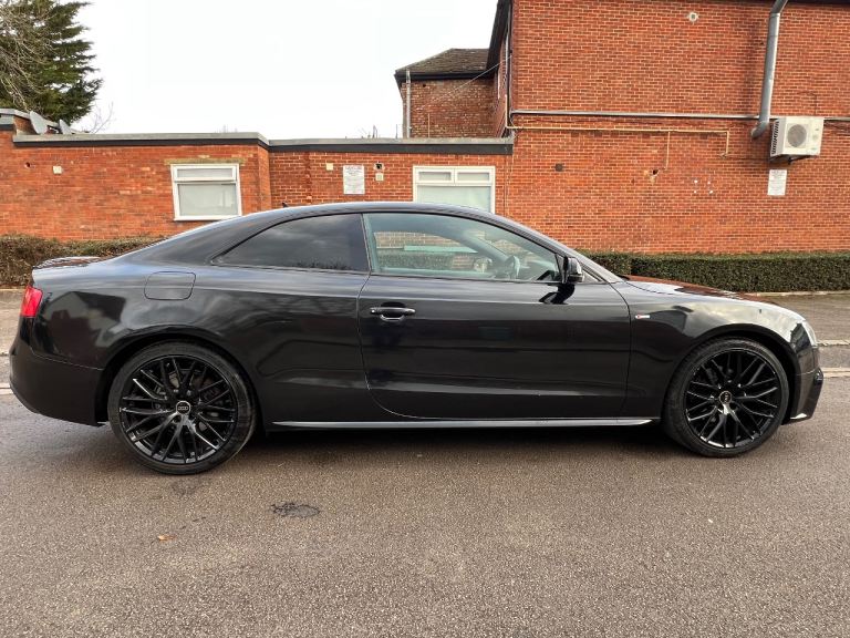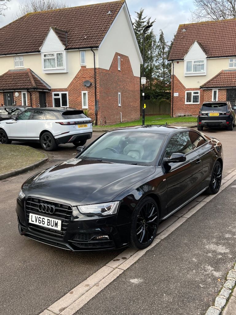 Black Audi A5 TFSI 1.8 S Line black Edition plus petrol with full black leather interior, covered 76,000 miles and in great condition. Features include heated seats, Bang & Olufsen sound system, reverse camera, and front & rear parking sensors. A stylish, comfortable car that drives superbly and offers a premium feel throughout.