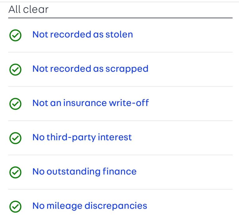 This vehicle has not been reported stolen, scrapped, exported or flagged as unroadworthy.