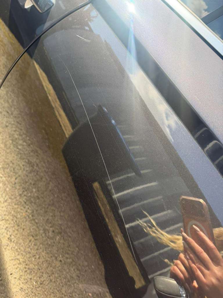 Minor cosmetic scratch on rear passenger door (shown in photos).