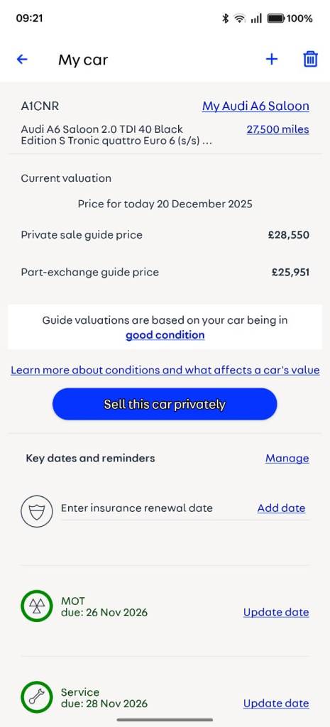 Audi A6 black edition in great unmarked condition. With Full dealership service history . Last dealer service has just been completed in November along with it's first MOT . The car is the 2023 model having been first registered the end of November 2022. Lots of extras fitted ,park assistant plus , light pack , digital dash,auto headlights , keyless entry, all round camera's , etc. Unfortunately the car was categorised as a CAT N , stolen recovered back in May 2023 , The HPI checks I had completed on purchase verified the car been categorised , but it had never been in a salvage yard , along with no damage and that the previous owner had bought the car back direct from the insurance company . I also had a car health check done by Audi Birmingham prior to my purchase and it also showed no issues . However saying that your more than welcome to arrange your own hpi checks or any mechanical inspections you wish, before purchase . The car also has no finance or loans secured against it . It also comes with a full Audi All In service Pack and 2 years Audi extended warranty attached to the car . It consists of a full 2 years Audi extended warranty , 2 free services, 2 free Mot ,& 2 years free Audi breakdown cover . See pictures showing above pack & digital service history . I've owned the car for over 2 years and apart from a new set of tyres ,it's never missed a beat , No dents, dings or scratches . It's an extremely comfortable , quality car with in as new condition, fantastic MPG and absolutely no faults . The V5 , 2 keys ,locking wheel security key ,and all service paperwork and user manual is in my possession and registered in my name and my address. It's a Genuine car and I'm ,only selling as its now barely used. My wife and I have now decided as we are now both well into retirement , We are going to reduce our cars down to just one car one between us . I've priced the Audi to sell please see today's auto trader valuation picture. The car is in fantastic unmarked condition and I think the first to see will buy . The private registration has been removed from the car and is not included in the sale . Bank transfer only .