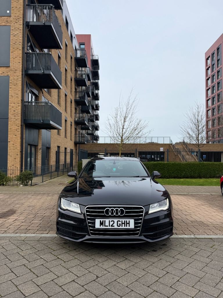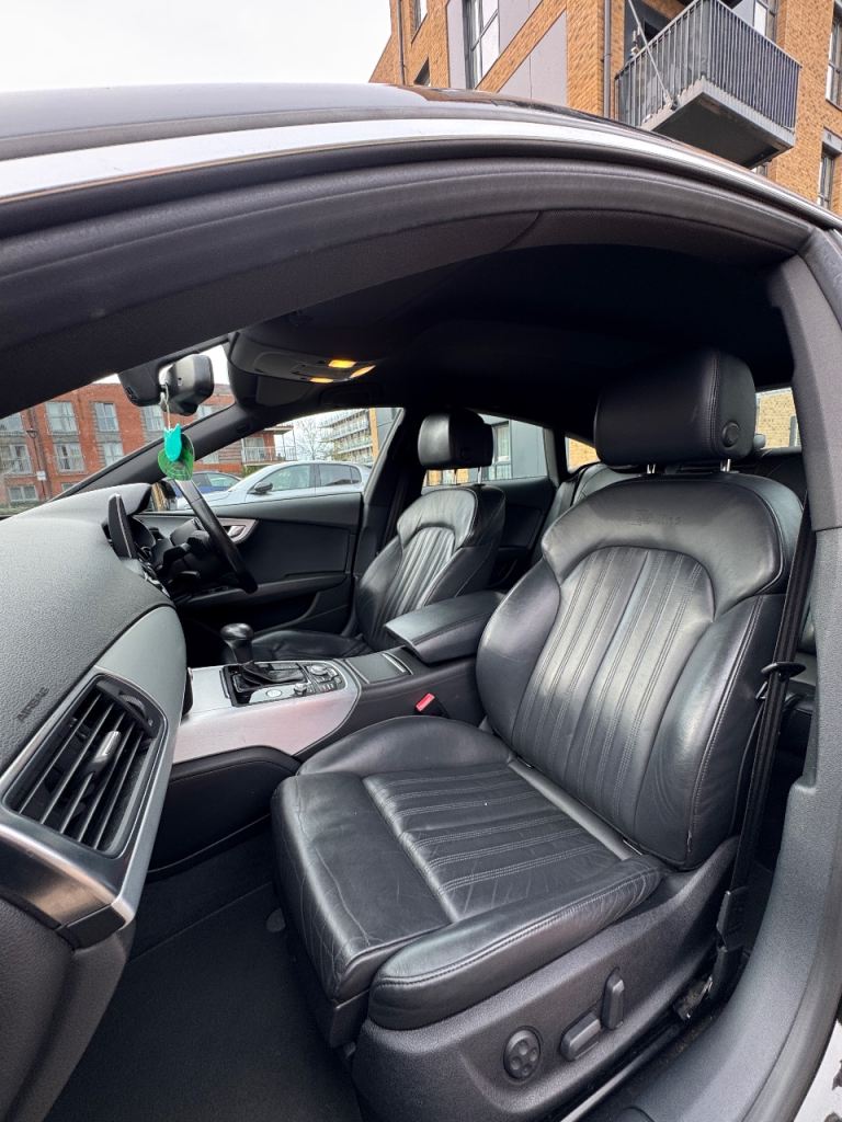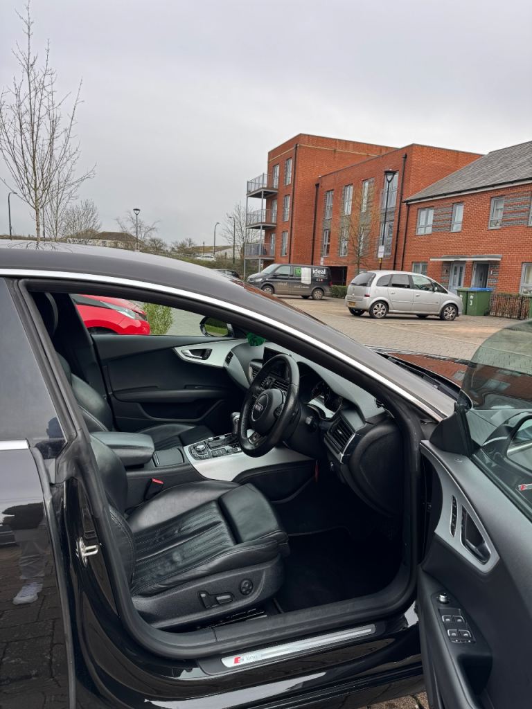 For sale Audi A7 S-Line 2012 BLACK 3.0 TDI, starts and drives perfect, no mechanical issues, very good condition inside/outside, currently done with it 130k miles, automatic gearbox 8 speeds, full service history, 10 months MOT, no advisories, all 4 tires are in good condition, two keys, (waiting on new v5 to receive because I removed the private plates) it has heated seats, electric seats with memory, black leather in perfect condition, paddles shift on steering wheel, sat nav,